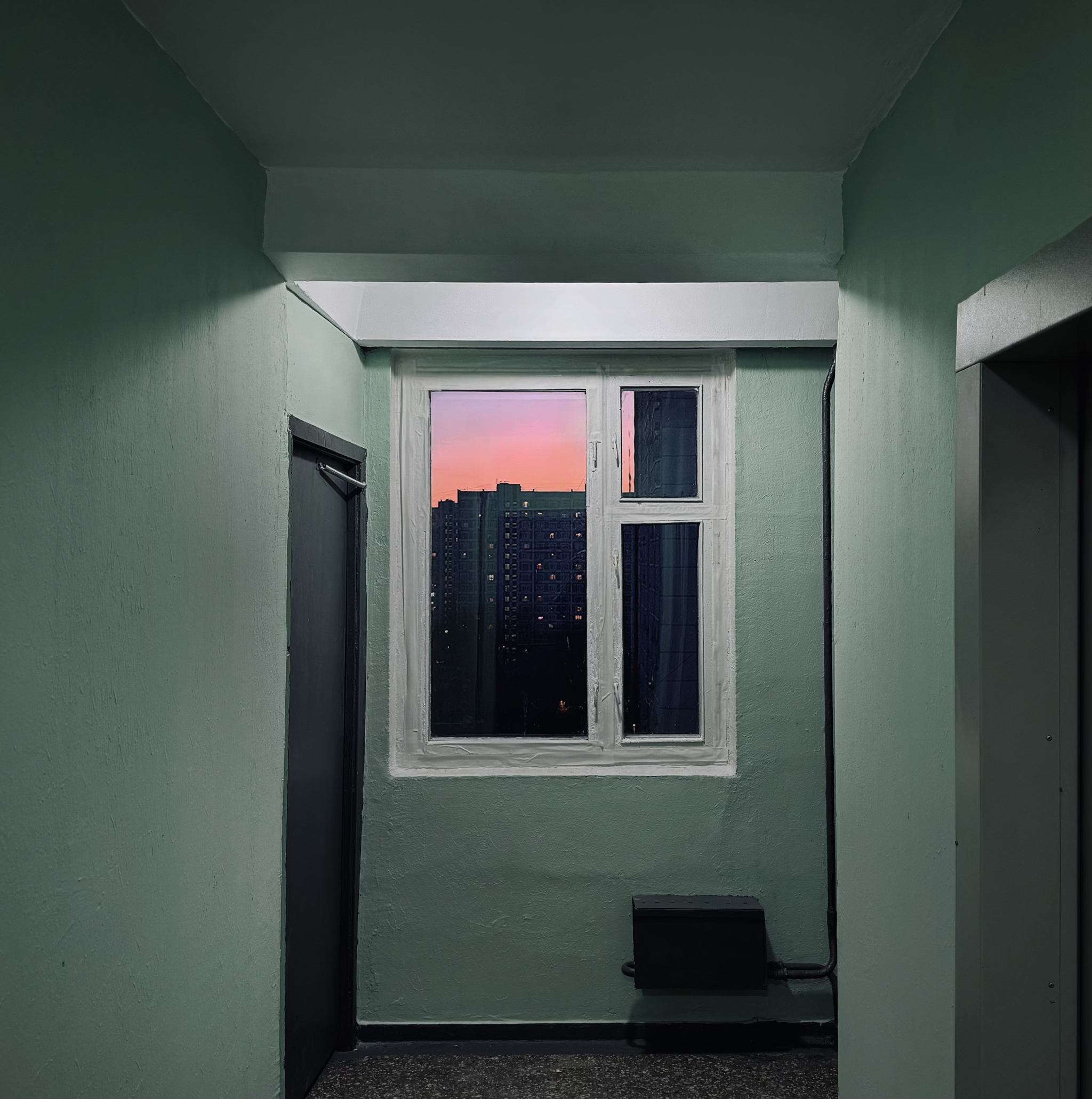 Вызвала лифт, стою жду, любуюсь видом из окна. Зацепило, как-то на контрасте, будто ты стоишь в картинной галерее, а может быть смотришь в иллюминатор самолета, или же заглядываешь в калейдоскоп, наблюдаешь за сменой событий, узоров, огней, красок. Сфотографировала и поехала дальше по делам.