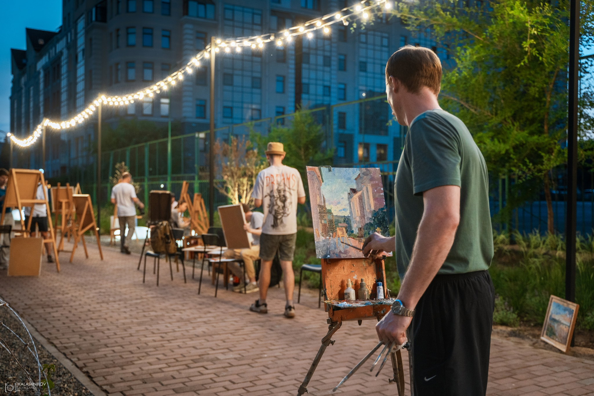 Недавно заглядывал на открытый пленэр и лекцию по живописи, которые проходили на заднем дворике музея «Искусство Омска». Давно хотел пофотографировать пленэр и тут такая интересная возможность! А самое интересное началось в конце, когда на улице стемнело и освещение от иллюминации стало более мистическим. На этом фоне даже повыползали фантастические твари, ведь я уверен, что комары не могли кусать с силой разъяренного медведя... ну это я так, шуткую. Было здорово