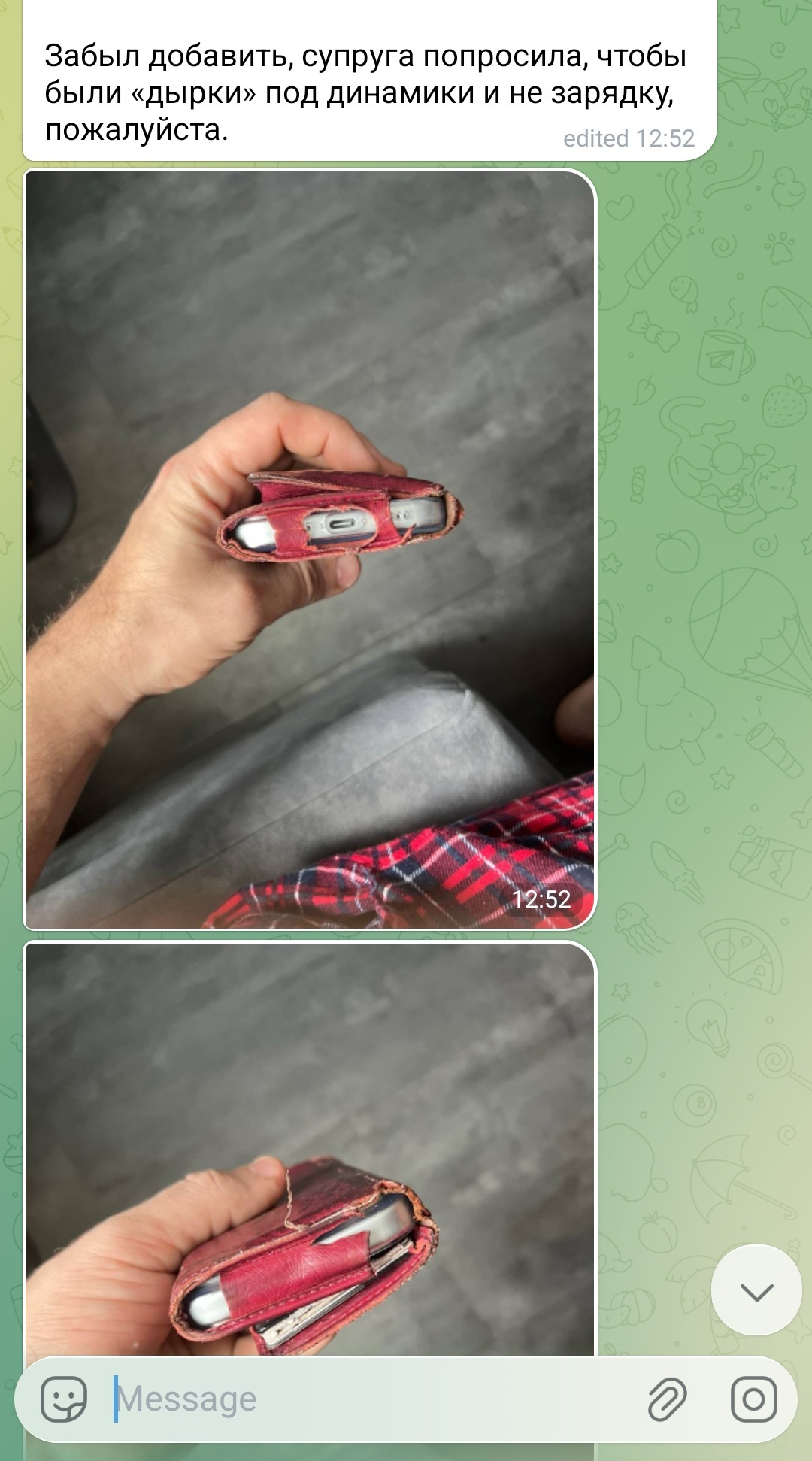Для удобства выполнения заказа купил "бампер", без ☎️ ( возможно по переписке не совсем понятно) от модели телефона клиента, и по ему уже шил по месту.