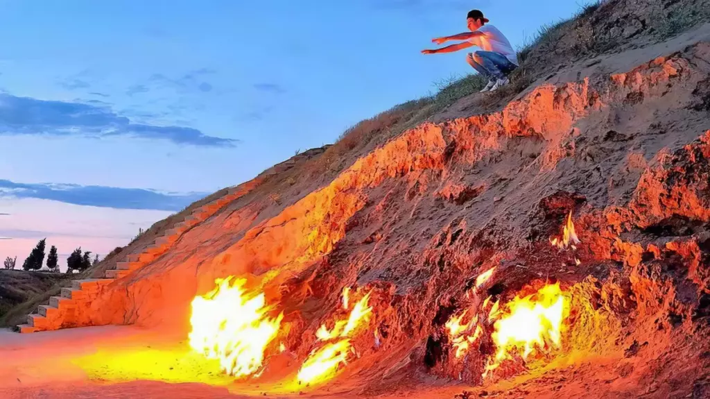 Горит в недрах не только уголь, но и природный газ. Самый известный такой очаг находится недалеко от аула Дарваза в Туркменистане. Сия достопримечательность даже получила персональное название в туристических справочниках — Врата ада.