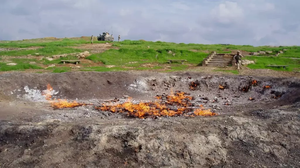 Баба-Гургур место совершенно нетуристическое. И не потому, что малоизвестно или к «вечному пламени» трудно попасть. Просто горение газа сопровождается выделением большого объема сероводорода, и дышать около него попросту невозможно.