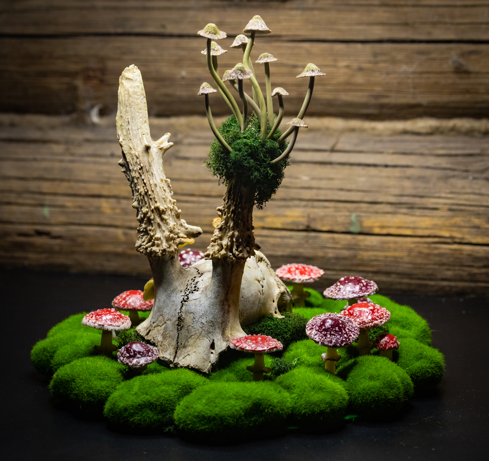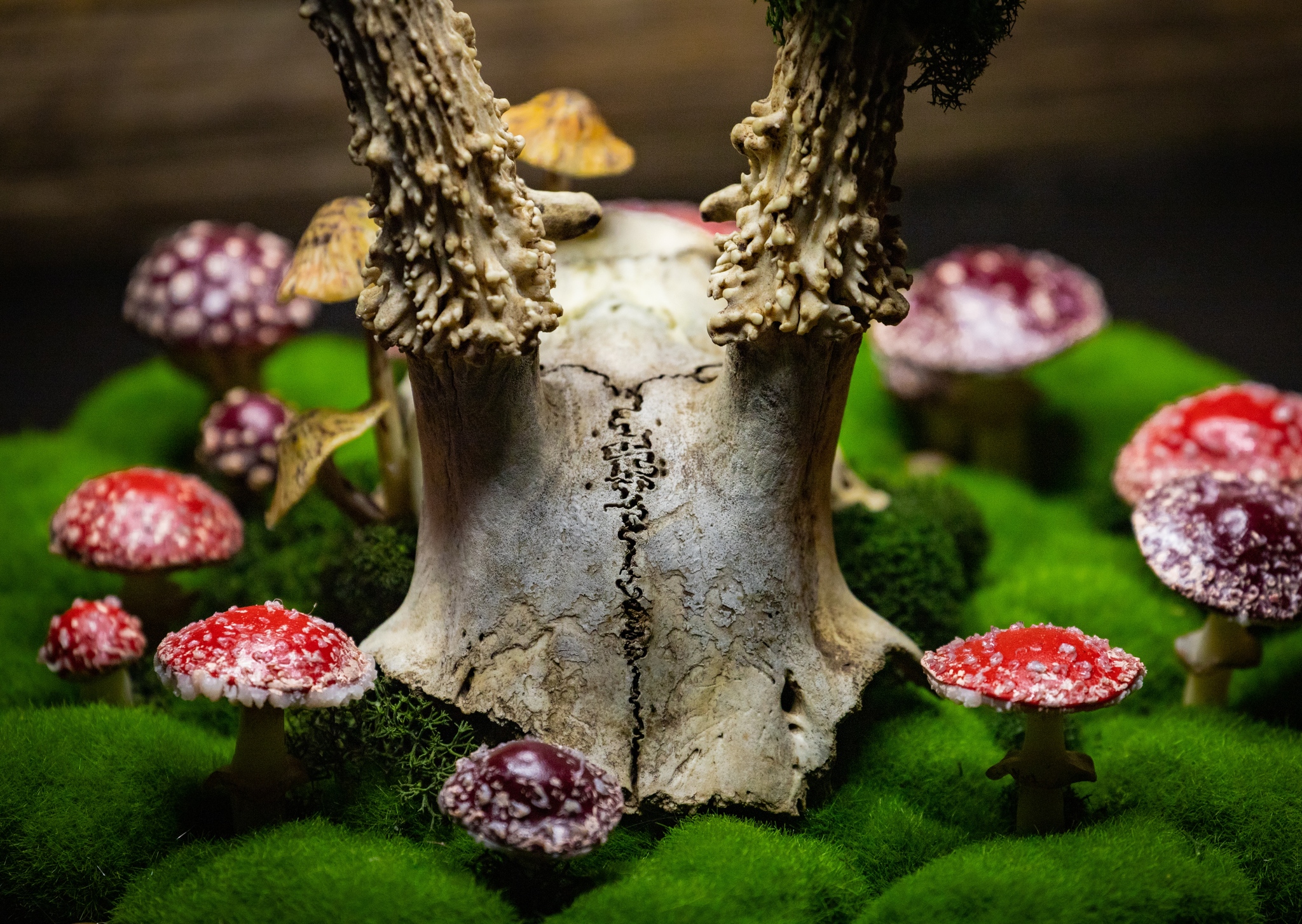Материалы: искусственный и стабилизированный мох, полимерная глина, камень, череп косули (точнее, его часть))