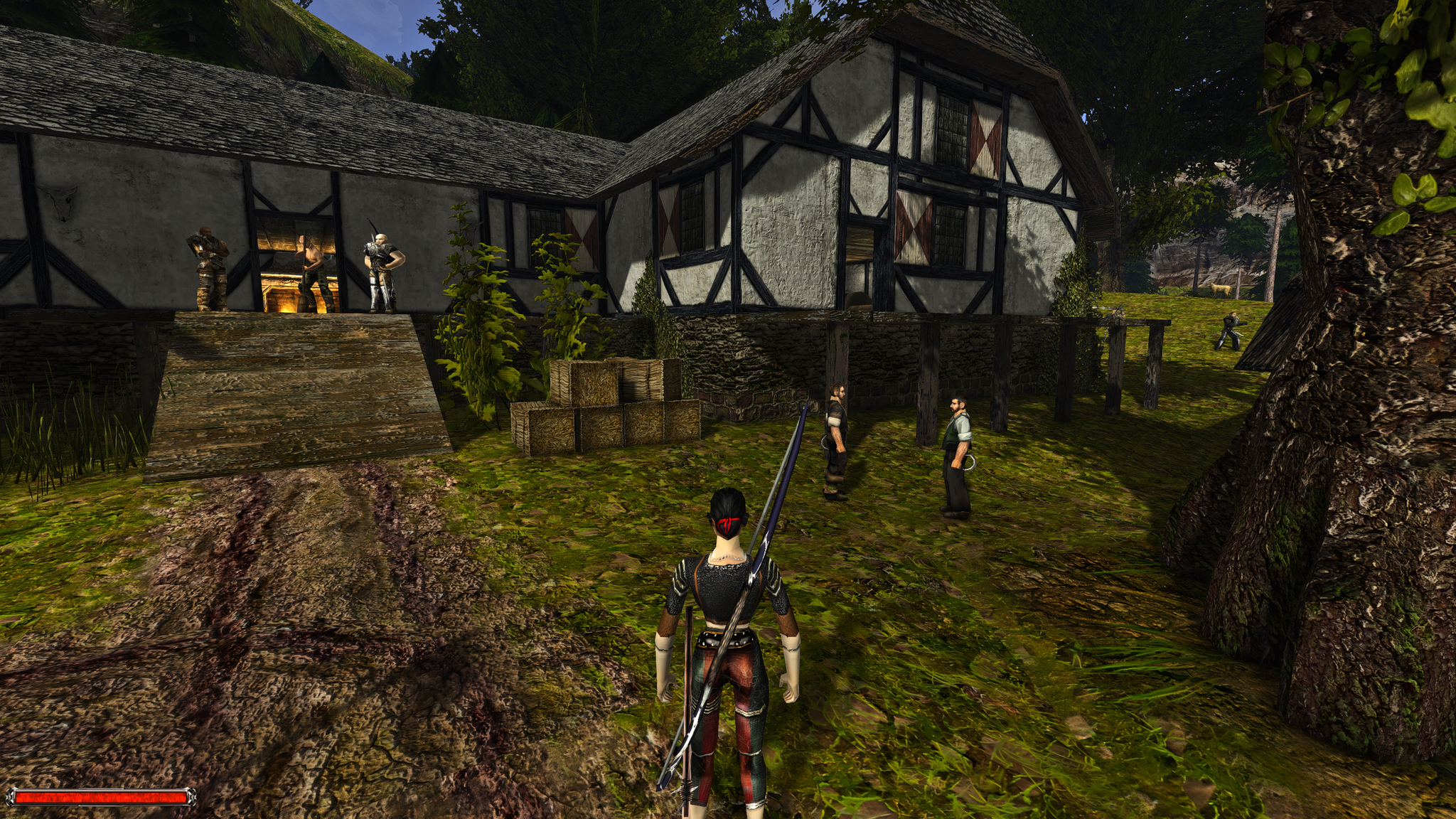 Мир: Все события мода будут происходить на основной локации острова Хориниc. Мы не посетим Долину Рудников, Яркендар и Ирдорат, нам не дадут зайти на территорию Монастыря, но и этого будет вполне достаточно. Локация мода и так неплохо наполнена, а уже изученные Безымянным территории будут представлены в несколько ином виде. Например, башню Ксардаса осадила банда полуразумных гоблинов, ферма Бенгара разрушена из-за прорыва перехода орками, а ночами по полю боя бродят неупокоенные призраки, долину раскопок облюбовала банда Сентензы, а в пещере, между башней Ксардаса и городом (где нас впервые встречает бандит с ориентировкой), от наемников прячется бедный Корнелиус. Да, тот самый убогий мерзавец, который ложно обвинил кузнеца Беннета в убийстве паладина.
