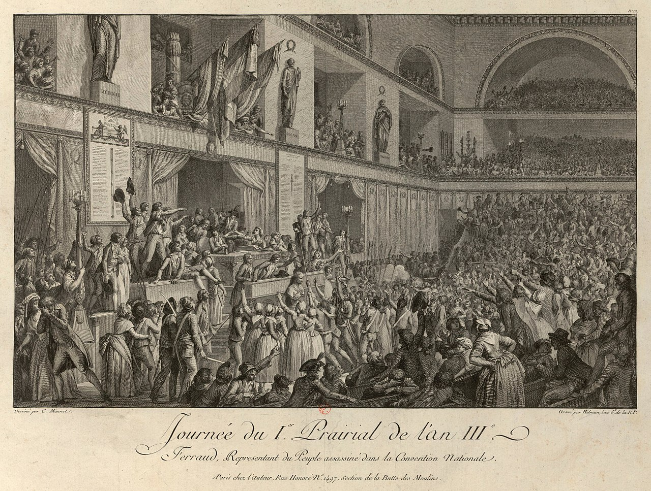 Первого мая рано утром в рабочих предместьях ударили в набат, и народ стал вооружаться. В восстании большую роль играли женщины. Снова толпа окружила Конвент, и снова под лозунгом «Хлеба и Конституцию 1793».