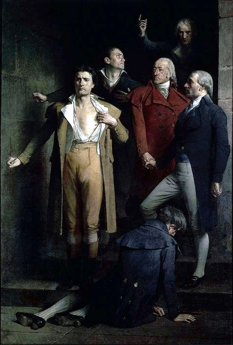 Особенно старательно термидорианцы расправлялись с якобинцами. Шестеро из них, кто поддержал требования народа, будучи под арестом, поступили в духе того героического и жестокого времени. Кто-то из их родственников пронес в тюрьму нож. Один из депутатов закололся им, следующий выдернул из раны нож и закололся сам, так поступил и следующий, который, смертельно себя ранив, вынул нож и передал(!) следующему. Еще двое попытались покончить с собой при помощи ножниц.