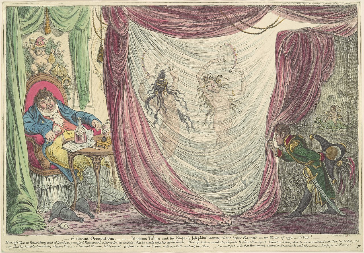 Карикатура на Барраса и двух его любовниц: Терезу Тальен и Жозефину Богарне. А подглядывает.. Сами догадайтесь