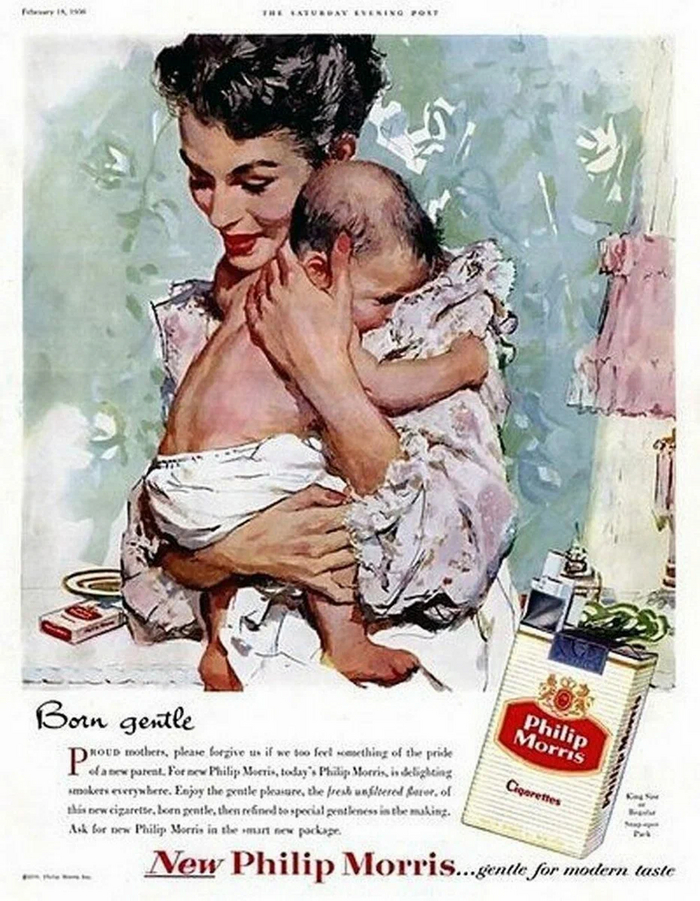 Сейчас, в наше время, не встретишь рекламу сигарет, что правильно. Но раньше, она была везде и повсеместно. Табачные маркетологи придумали идеальную стратегию, навязывая в обществе стереотип того, как круто быть курящим человеком, давая ему образ привлекательного молодого человека. Образ мог быть совершенно разным, ковбой, красивая женщина держащая в руках сигарету, игроки спортивных команд, и даже ребенок. Этот образ я скоро развенчаю в своем телеграм-канале, переходи, если интересна тема отказа от табака.