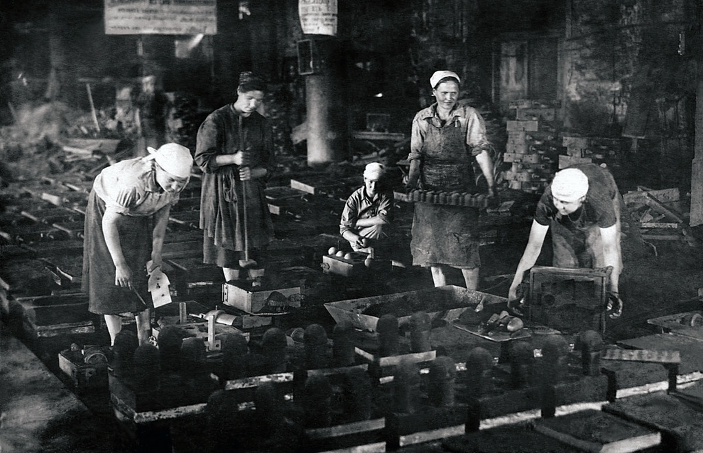 г. Усть-Катав. Вагоностроительный завод. Цех № 7. Члены комсомольско-молодежной бригады А. Бахарева. Дата съемки: 1943 год