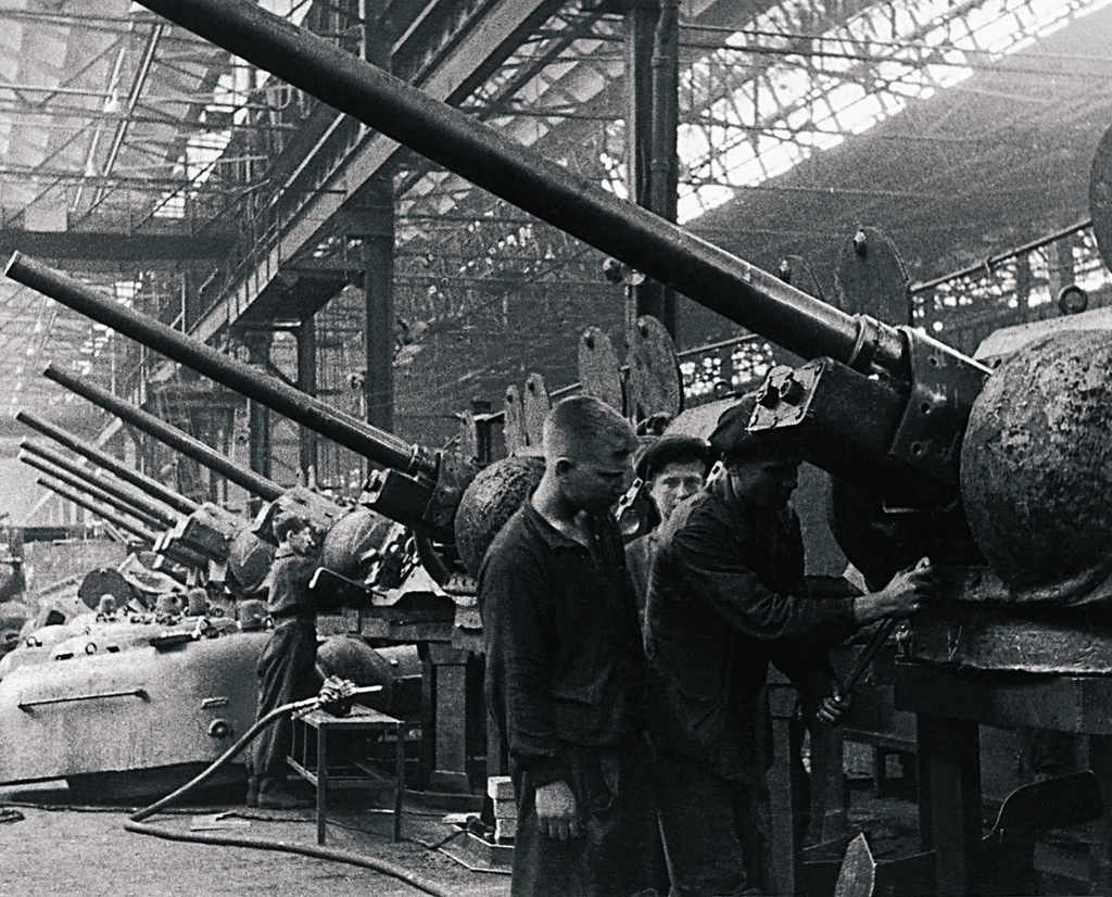 Кировский завод Наркомата танковой промышленности. Участок монтажа танковых орудий