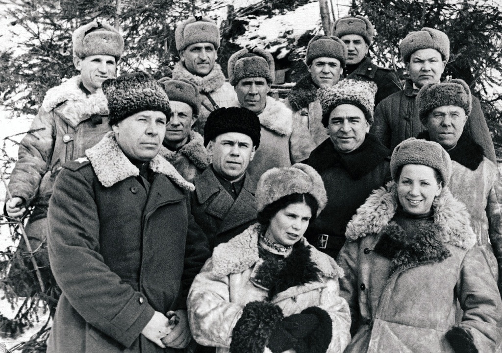 Миасская делегация треста «Миассзолото» на командном пункте Северо-Западного фронта. В первом ряду первый слева командующий фронтом Маршал Советского Союза Семен Тимошенко
