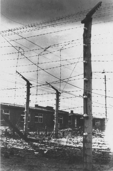 Лагерь смерти «Штутгоф». Ограда лагеря. Колючая проволока под высоким напряжением.