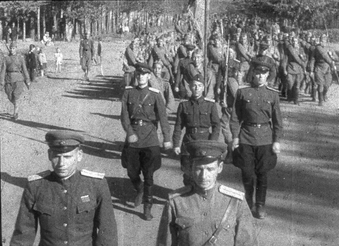 Пионеры в гостях у кантемировцев. Дата съемки: 1945 год