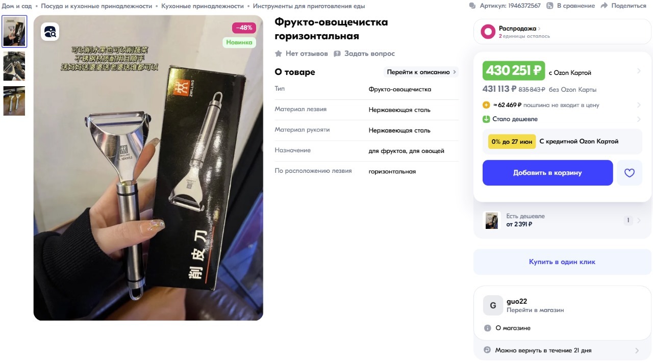 J0HNSS0N Великая сила Пикабу! Разъясни! 8 месяцев назад Почти полляма (с пошлиной) Не одна такая... Пара овощетичисток и ага... Случайно наткнулся на маркетплейсе. (Да простят меня ладалюбители. Просто сравнил... Ничего личного).Почему и зачем там есть такие лоты? Вопрос Спроси Пикабу Маркетплейс Скриншот 1 Ещё 0