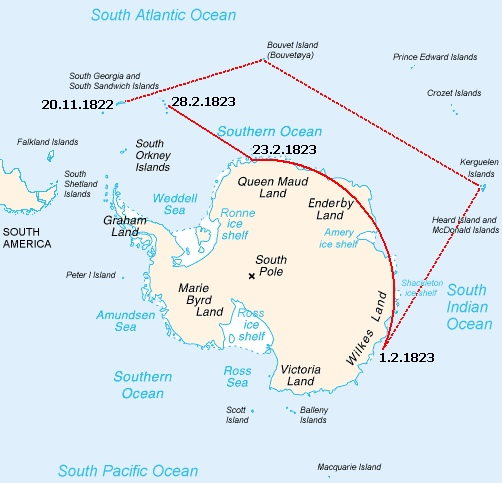 Итак, шхуна «Antarctic» покинула Нью-Йорк 25 июня 1828 года; капитан – 32-летний Бенджамин Моррелль. Он двигался вдоль побережья от современной Анголы до северных границ Капской колонии, собирая при всем этом живой товар. Вот что капитан записал в своем журнале: «их худощавые черные дети так и бегают сами вдоль берега, однако помимо этого товара здесь есть леопарды, буйволы, страусы и ценные минералы». Согласно его записям, экспедиция обнаружила 7 островов вблизи побережья современной Намибии, где имеется огромные и толстые слои гуано – птичьего дерьма, которое очень требовалось европейским государствам, находившимся в процессе индустриализации. Как ни странно, но в XIX веке гуано по своей ценности мог сравниться с сахаром, ромом, табаком, хлопком и индиго, притом найти его было не так-то просто. Так вот на одном из островков – Ичобе – слой гуано достигал толщины в 25 футов. Согласно подсчетам Моррелля, сделанных в его дневнике, разработка гуано на данном клочке суши могла бы принести ему за 2 года $30,000. 8 июня 1829 года он записал в свой журнал: «Путешествие оказалось весьма удачным вне всяких ожиданий, но оставаться дальше на Африканском побережье означало бы пустую трату времени и денег». «Antarctic» вернулся в Нью-Йорк 14 июля того же года.
