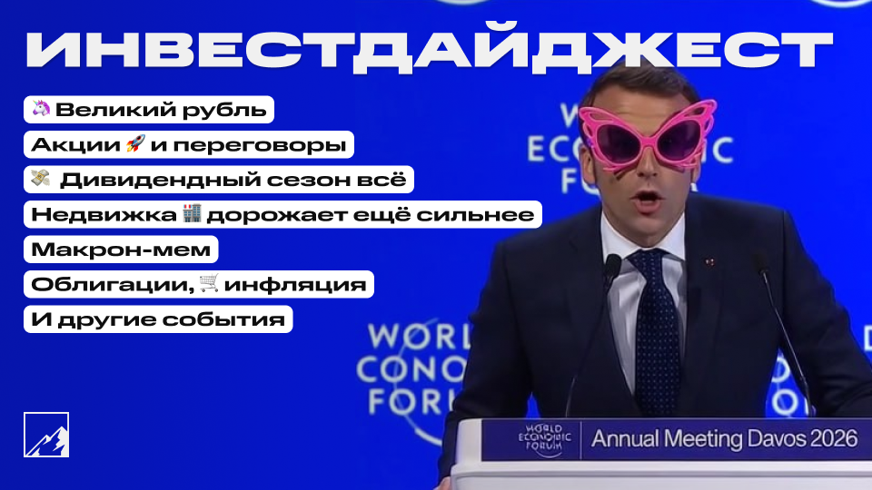 Пока эксперты кусают локти из-за того, что не умеют прогнозировать курс рубля, рубль продолжает укрепляться. Цены растут! Даже на недвижку и на акции, но не на облигации. Макрон стал классным мемасом. И вы все классные, вот и ловите свежий дайджест.
