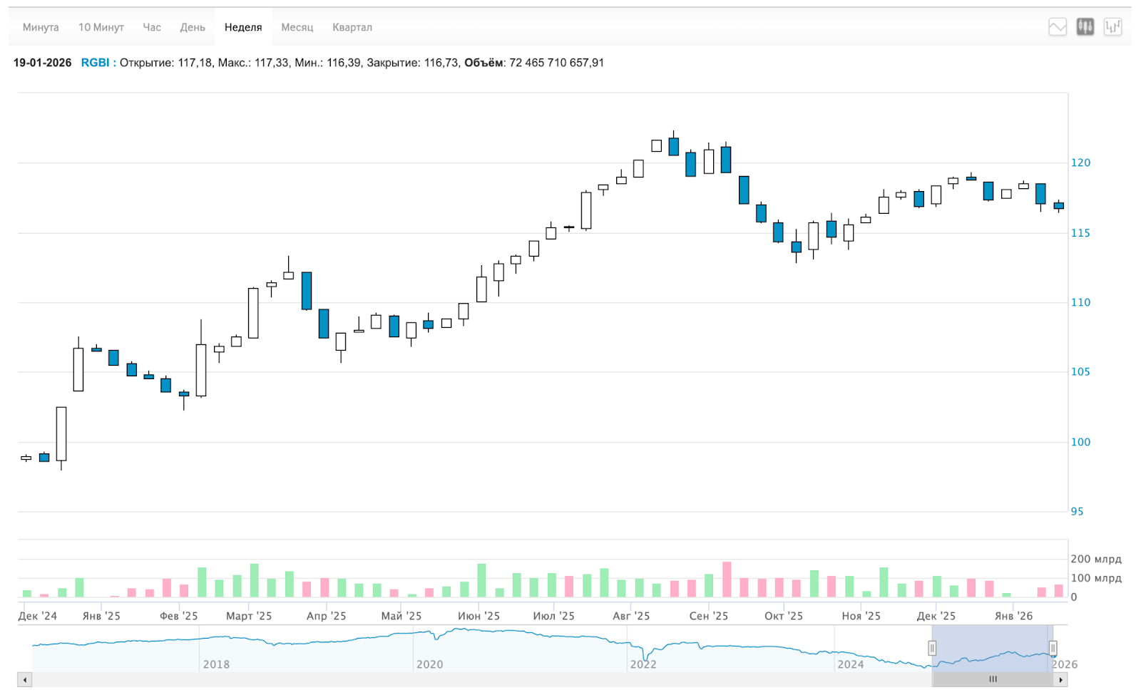 RGBI опять вниз: 117,08 → 116,73. Инфляция снова высокая. Ну… а что же поделать? Я продолжаю покупать длинные ОФЗ.
