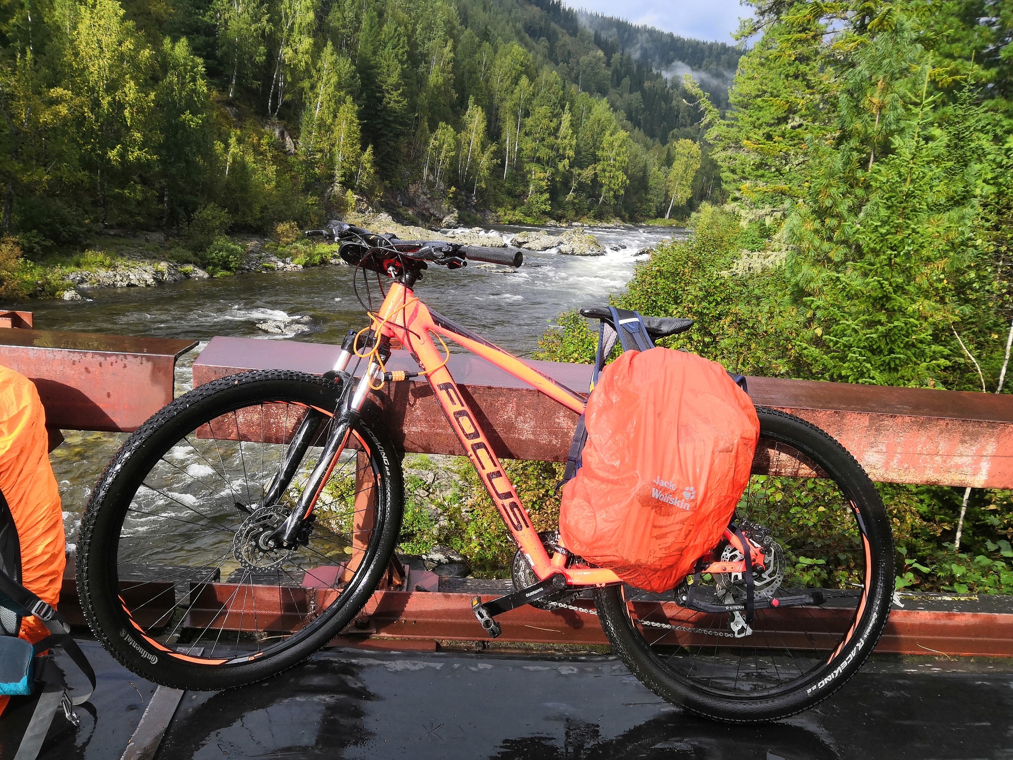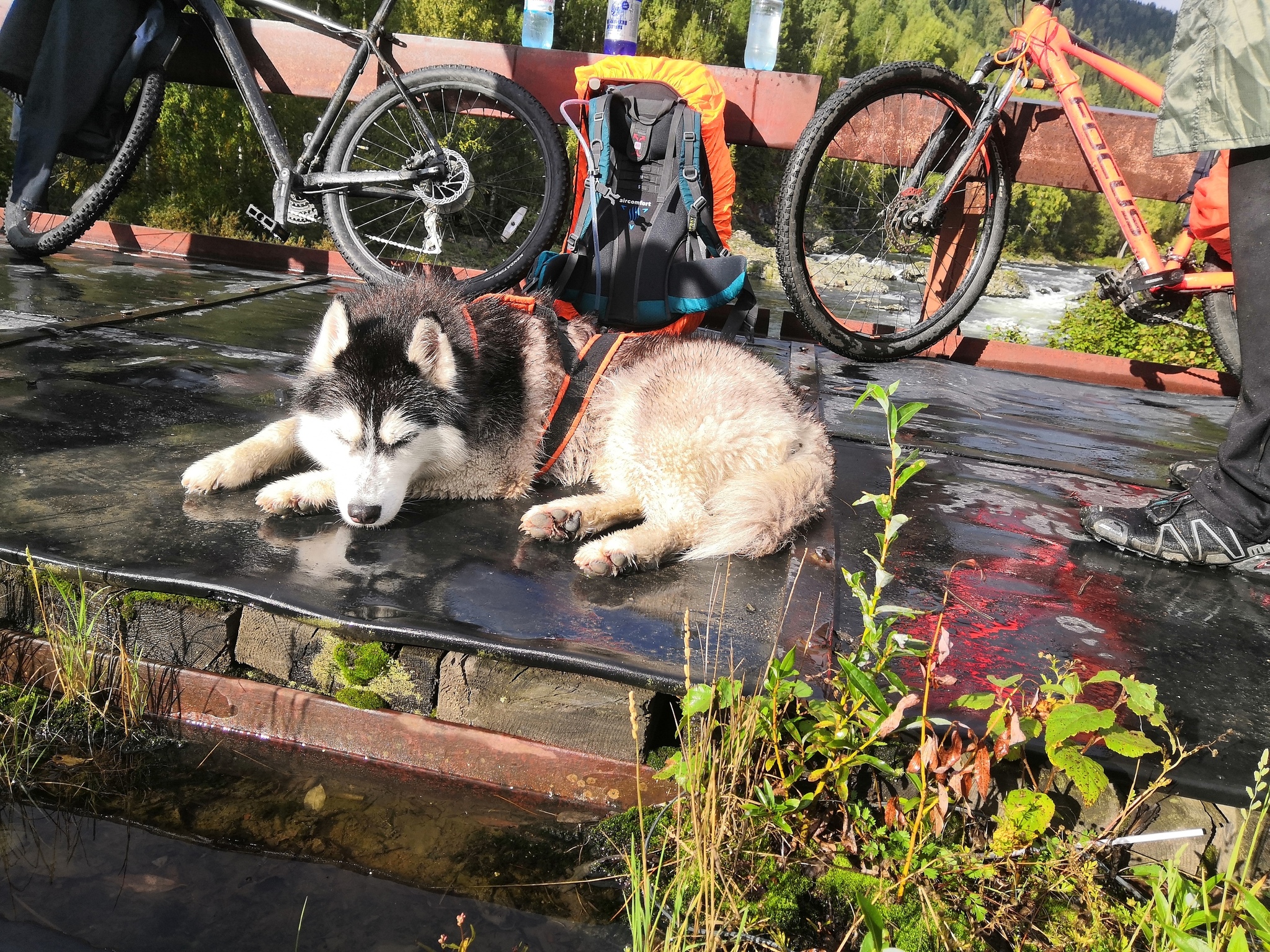 Дождь косыми каплями проникал сквозь Мишину куртку, а он возился с пакетом, чтоб его надеть, думал, куртка сдержит дождь, но был весь мокрый, благо, рюкзак остался сухим и спальник, примотанный под седлом, как и сумка на руле, Миша и Антон единственные, кто использовал велосипеды для перевозки вещей, остальные везли на себе в рюкзаках на спине. Сразу появились шутки "человек-пакет" и начались совместные фото, как в детстве в цирке "фото с питоном и клоуном"))))