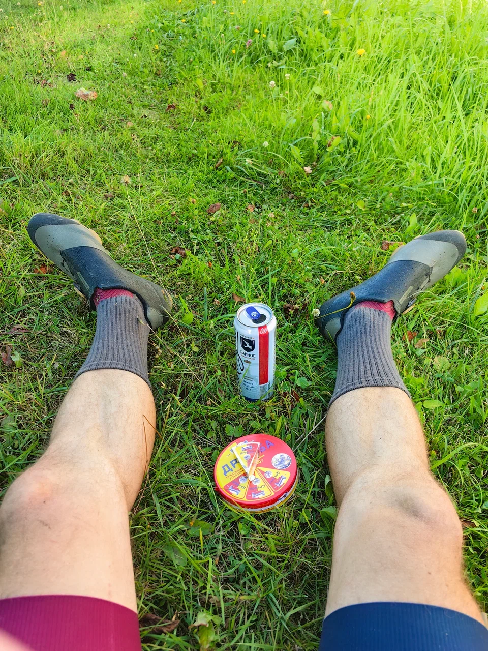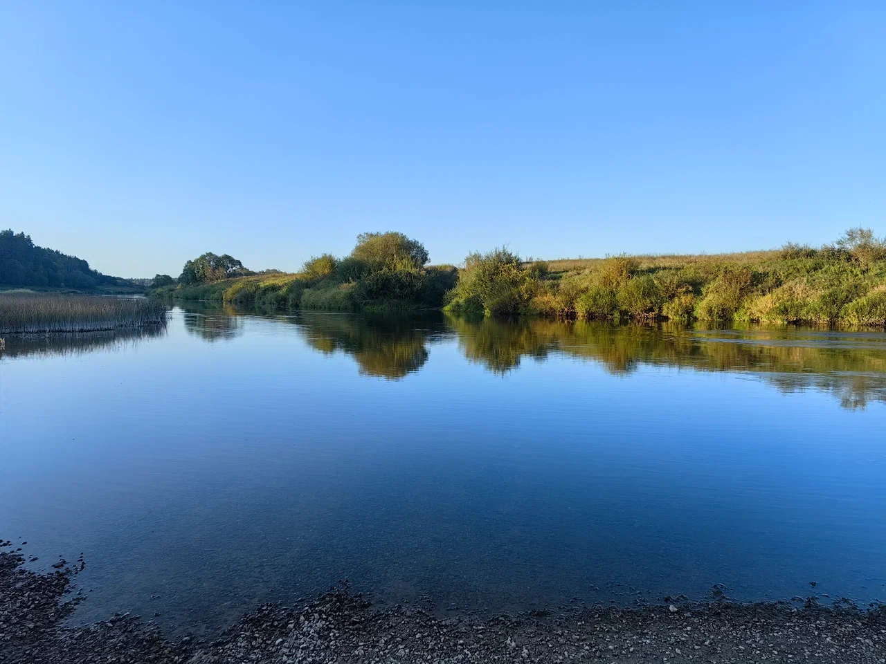Второй брод был шире и глубже. Перешёл сначала для разведки, замочил бибы. Вернулся за велом уже голышом, ехать в мокром по вечерним дорогам не хотелось. Закат уже заканчивался, в тишине плескались рыбины.