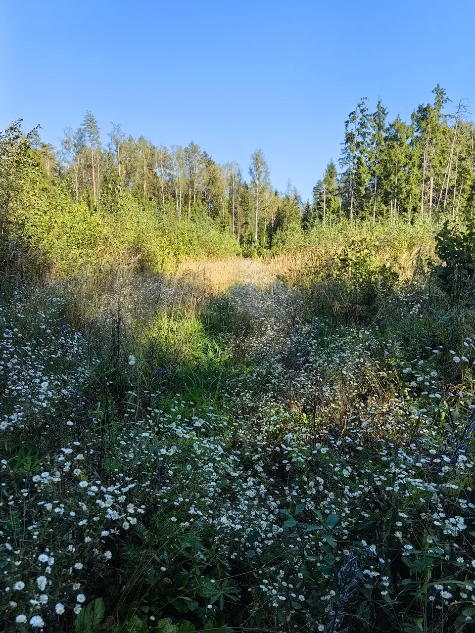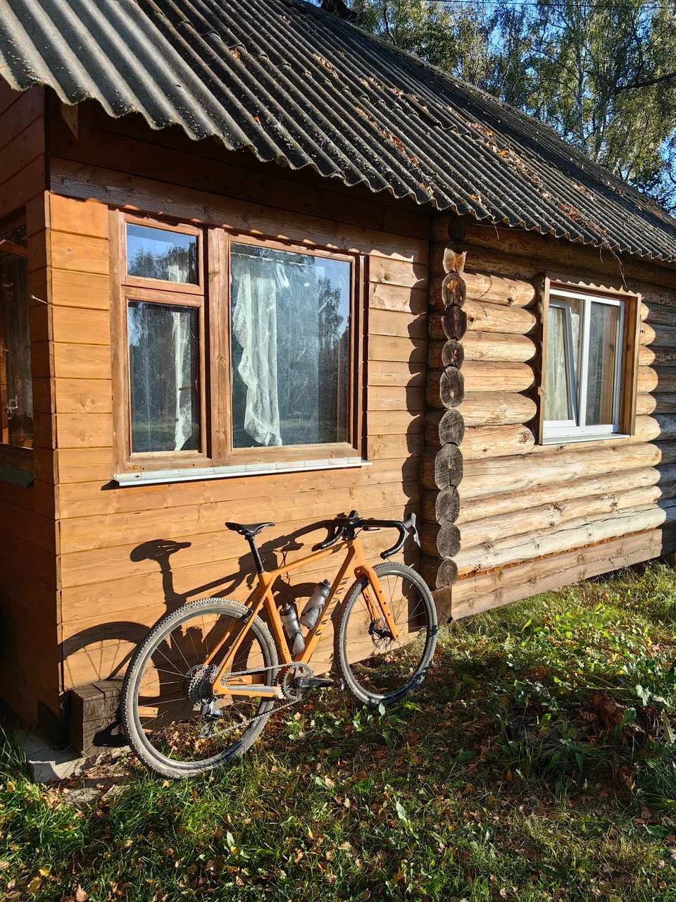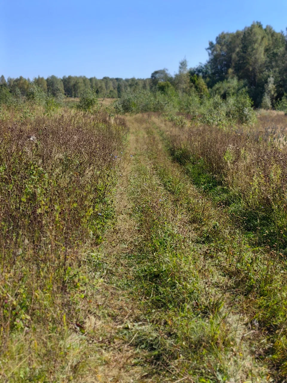 На тридцатом километре решил срезать путь по грунтовке. Сначала всё выглядело хорошо, но вскоре дорога стала теряться в густой траве и позже упёрлась в завал из молодых берёз. Шёл пешком, отмахиваясь от настырных лосиных мух, а на обратном пути снял с себя клеща. Вернулся к маршруту и почувствовал, как приятно снова крутить педали.
