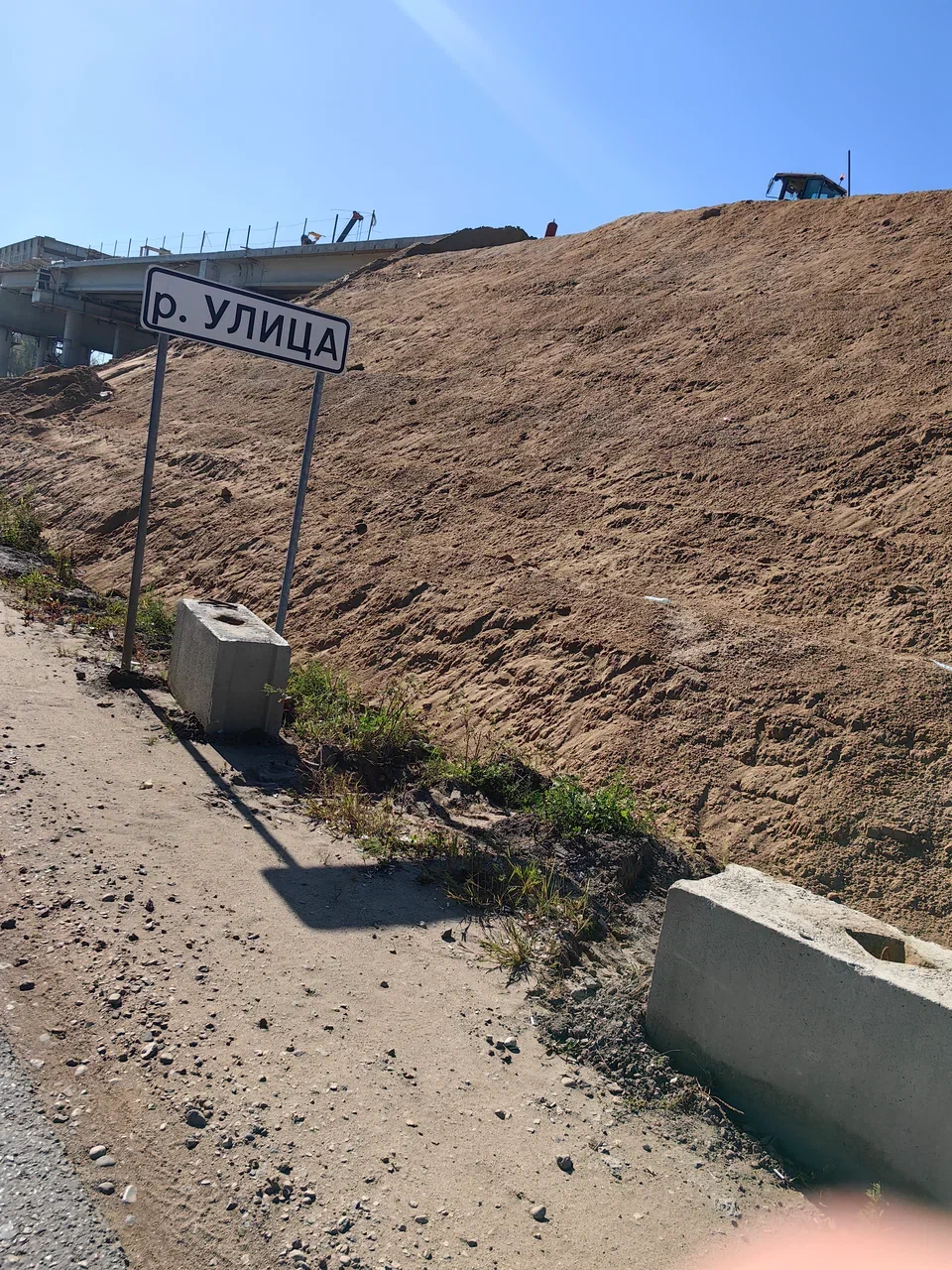 Маршрут начался у вокзала в Вязьме. Я позавтракал в "Магните", запихнул в баул и по карманам перекусы. Начинало припекать, захотелось уже снять длинные штаны и ветровку. Поехал к выезду из города мимо ремонтируемого моста. В целом трафик был редкий, только у объезда ремонта собралась пробка.