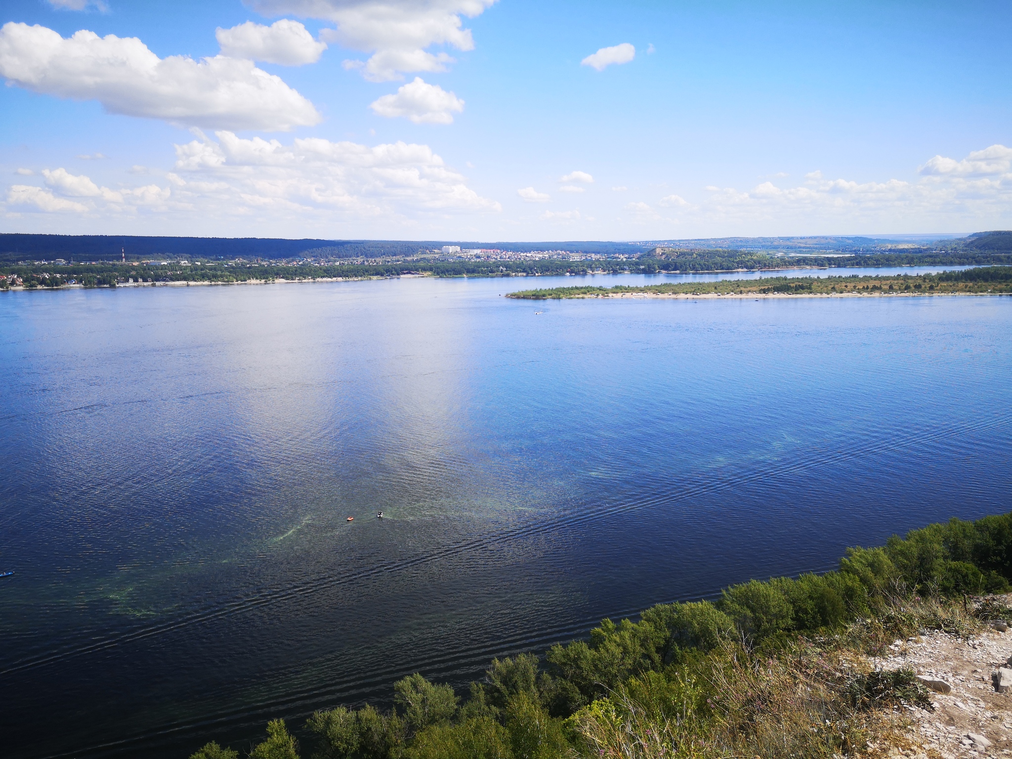 Лезу на гору. Без вела. С ним это абсолютно не реально) Набор высоты метров 90, но практически вертикально по камням. Вид через Волгу на Сокольи горы. Они с Жигулями образуют так называемые "Жигулевские ворота".