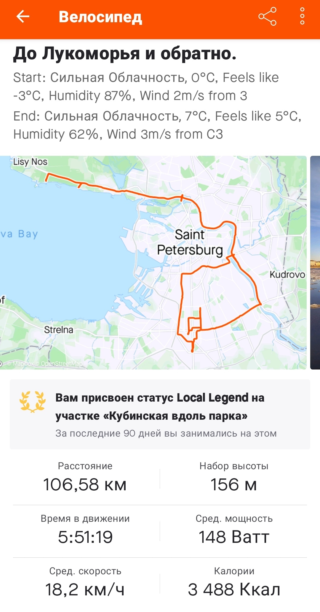Решил катнуть первую соточку в этом году. Всего получилось 106км. Решил прокатиться до экотропы "Лукоморье". В лесу проезжабельно(очень крепкий наст), но снега ещё очень много. Поездка вышла на удивление лёгкой, ожидал, что будет тяжелее, тем более, что по пути " туда" ветер был в морду. В общем прекрасное весеннее путешествие)