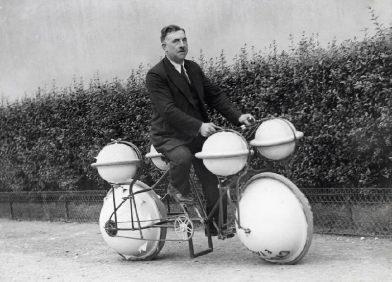 Велосипед-амфибия. Этот наземно-водный велосипед может нести нагрузку в 120 фунтов (55кг) Париж, 1932 год.