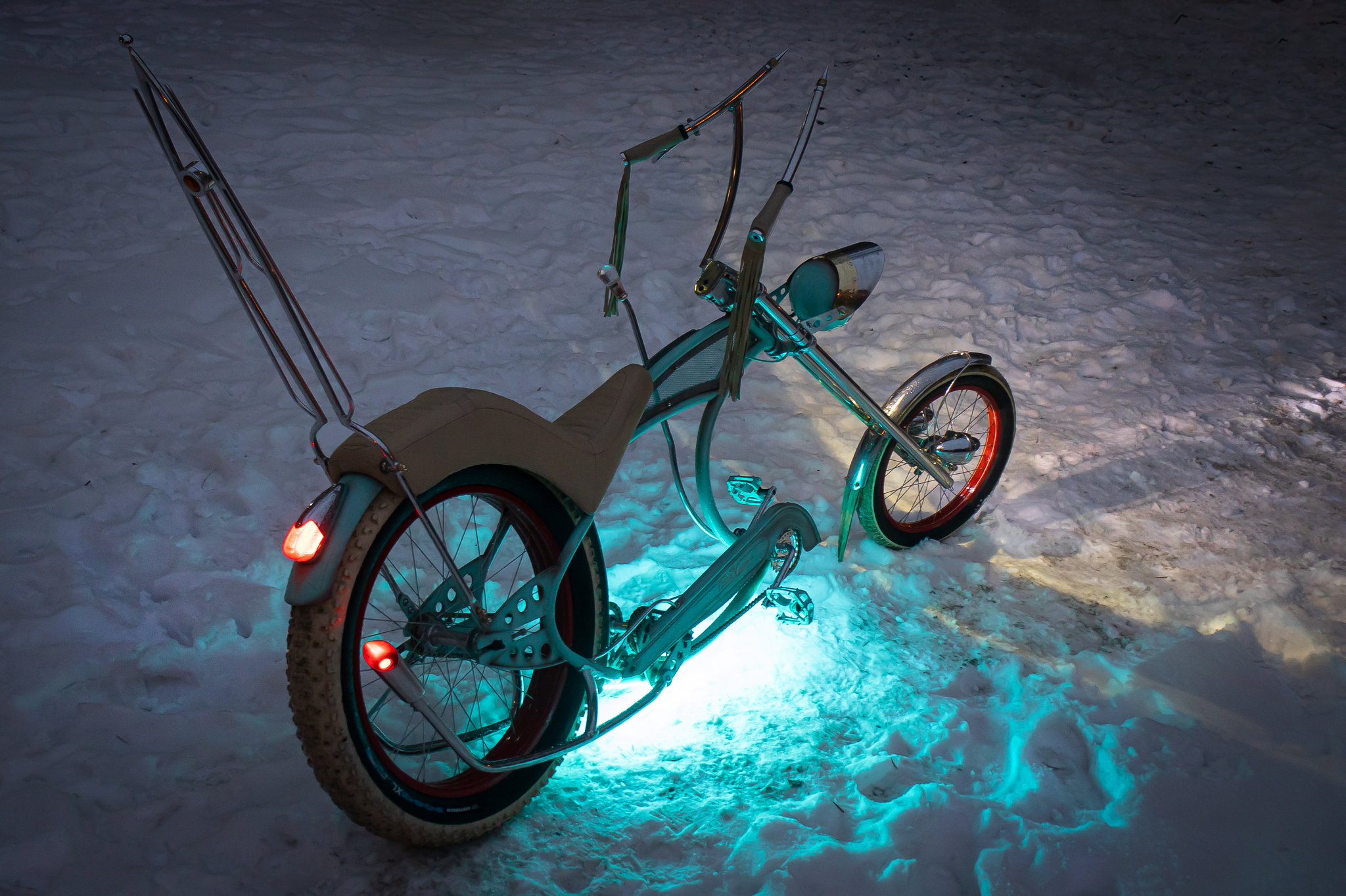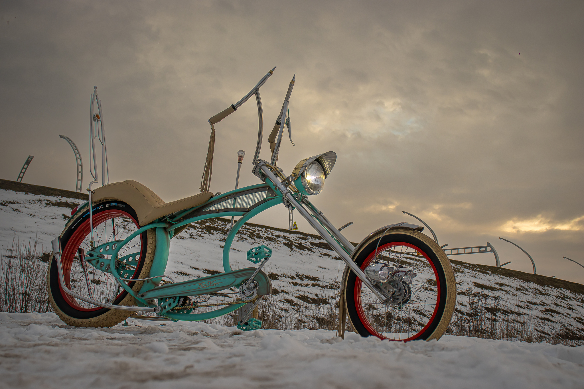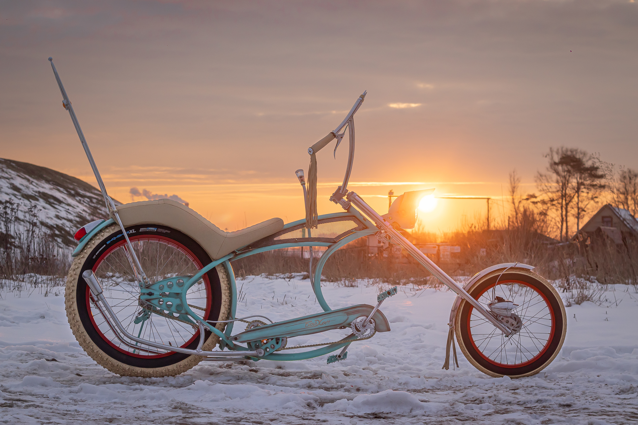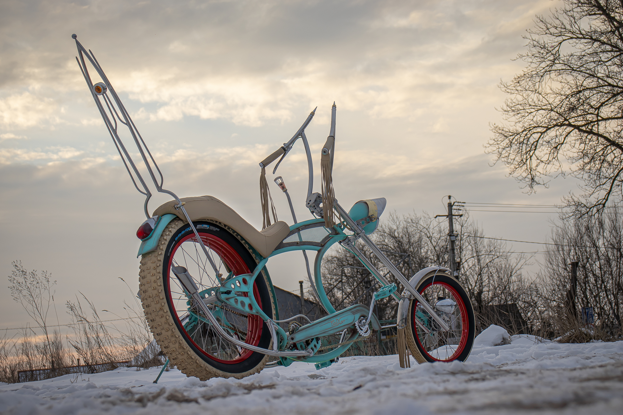 Продолжая развивать не совсем обычную для нас тему чопперов мы подумали что было бы круто попробовать сделать зимний вариант такого байка. Прекрасно отдавая себе отчёт в том что такие аппараты любят ровную дорогу, мы примерно догадывались как поведёт себя велосипед зимой. Однако, всё оказалось не так плохо - Бархан уверенно рассекает время и пространство.