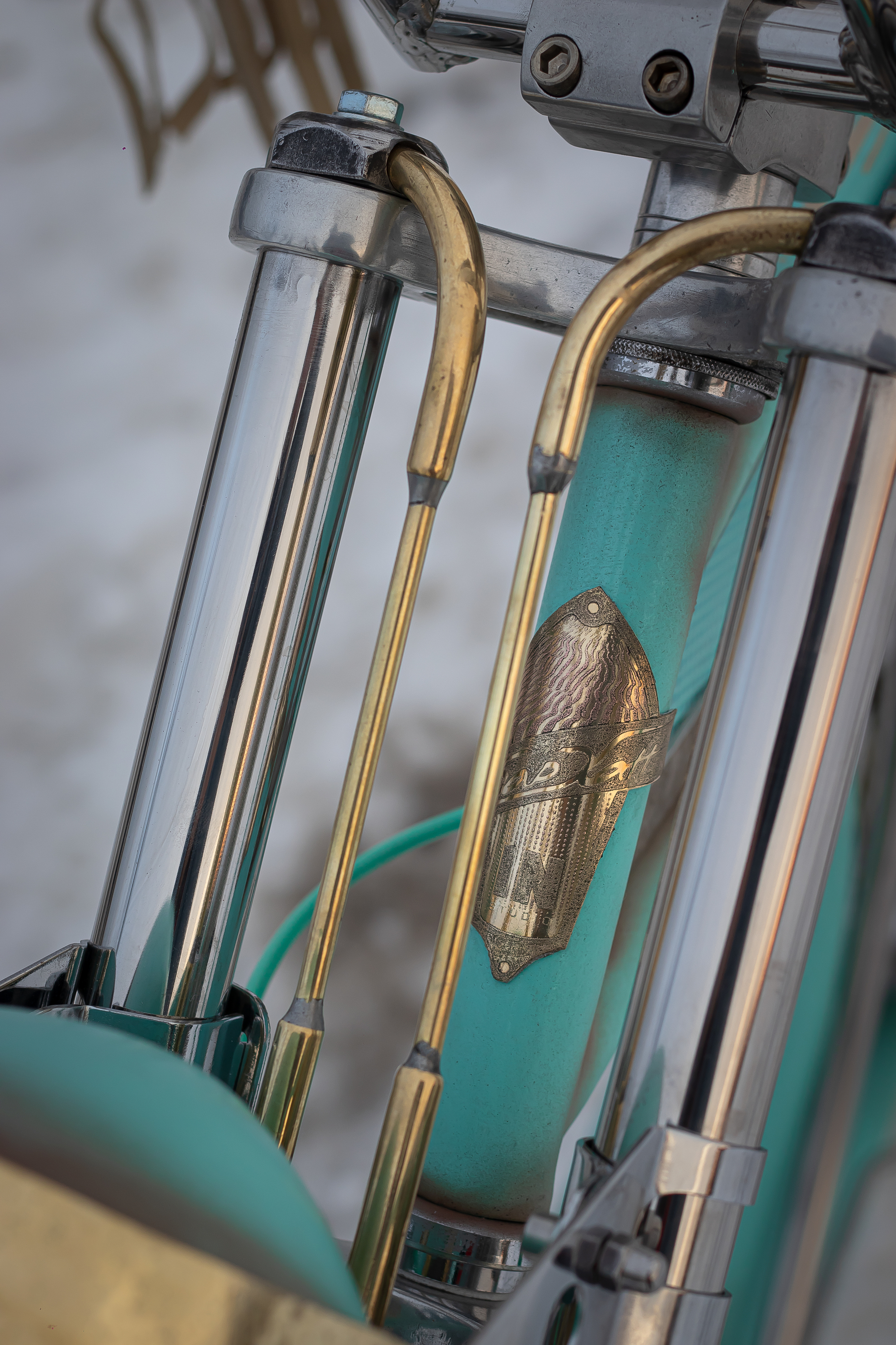 Почему Бархан? Дети девяностых возможно вспомнят причудливую игрушечную машинку с одноимённым названием, у которой задние колёса были большими и злыми, а переднее маленькими и добрыми. Но, разумеется это не всё: мы старались "закрутить" раму подобно серповидным пустынным дюнам. И вроде бы это у нас даже получилось (хотя трубогиб теперь с нами не разговаривает). Короче, хотелось создать нечто такое, что уместно бы смотрелось как в уютном зимнем пейзаже, так и на протяжённом пустынном хайвее.