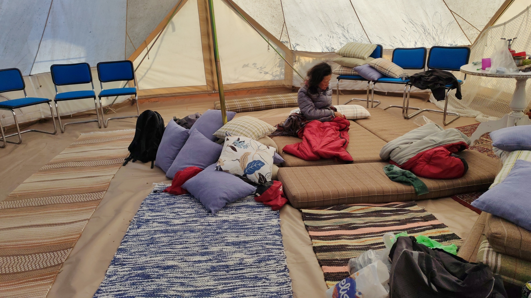 Он мне помог открутить колесо, чтобы поменять камеру, которую я проколол в первый же день. И поселил нас в огромной юрте...
