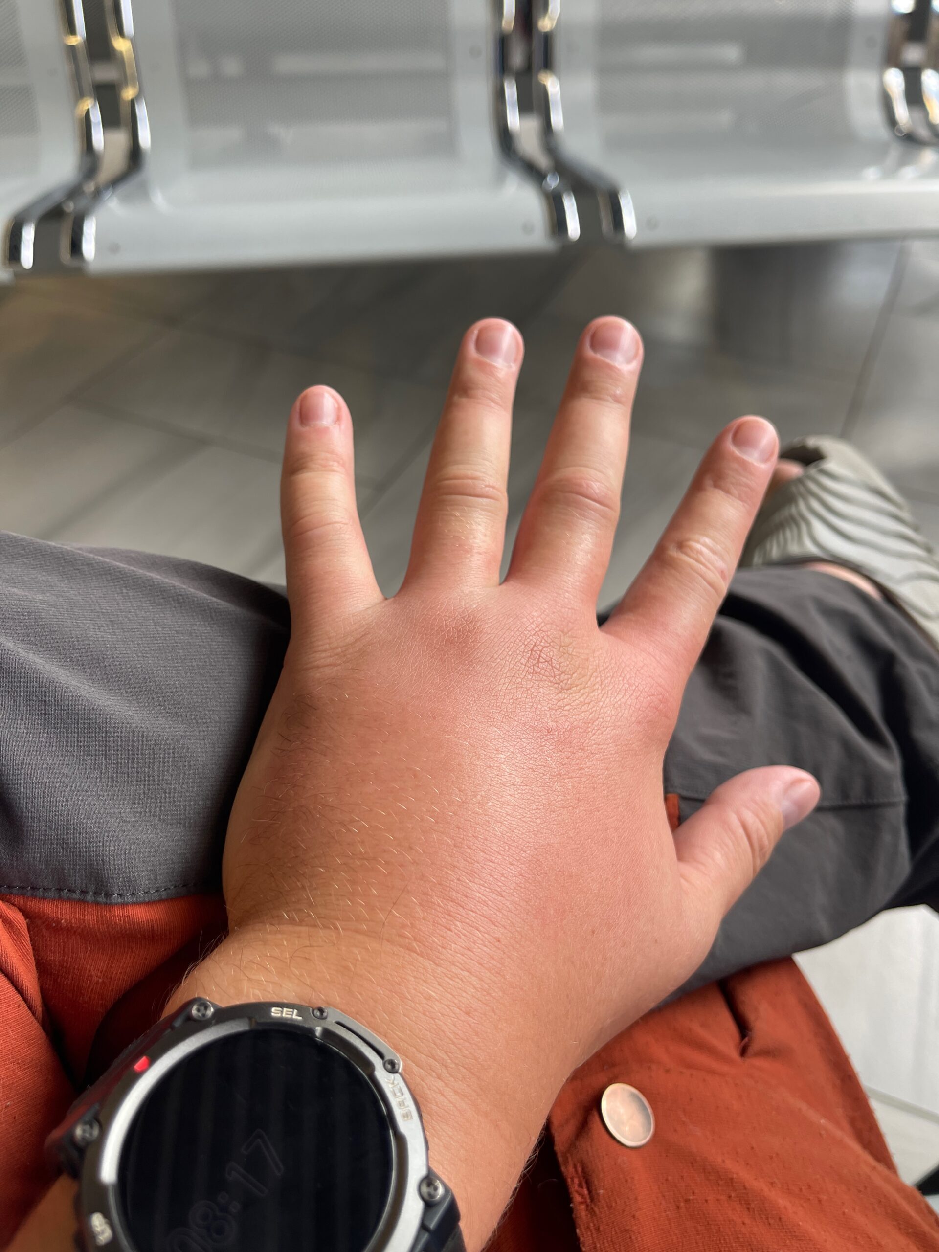 Впрочем, перед стартом были и тревоги. Во-первых, меня накануне вылета укусило какое-то насекомое, и левая рука распухла до неприличных размеров.