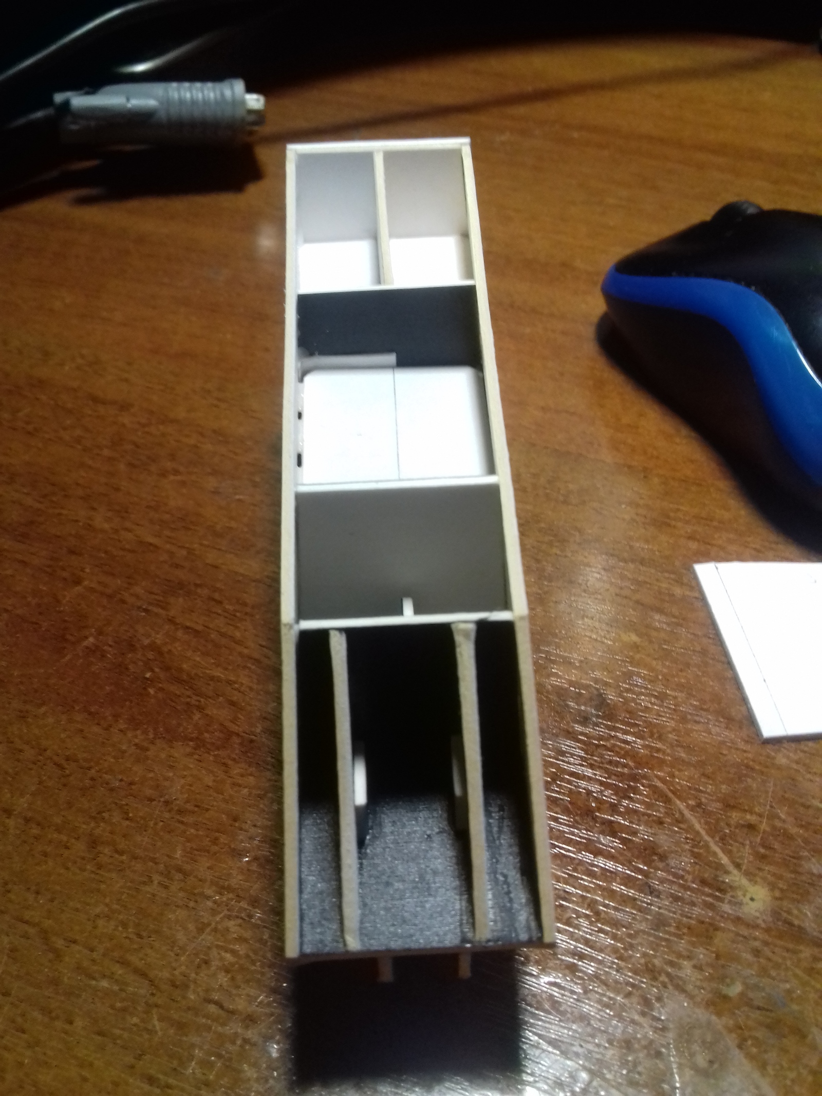 Закончил собирать каркас модуля с гнездом питания. теперь модель имеет свою максимальную и окончательную длину 565 мм. Изначально собирался в данном отсеке разместить аккумулятор на 3.7 V,но отказался от этой идеи в пользу старой доброй зарядки от Nokia на 5V. Гнездо было удалено из него же. дальнейшая сборка модели теперь возобновится только после того как придут диоды и прочая электроника,т.к. до ее установки невозможно склеить верхнюю и нижнюю части корабля,что затрудняет работу над всей моделью зразу