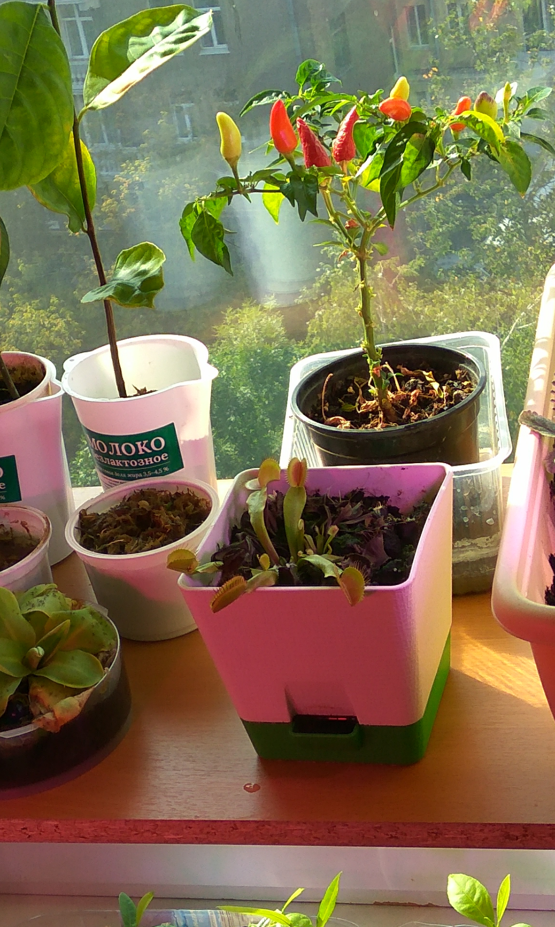 Это - моя мухоловка. Официальное наименование Dionea muscipula или Венерина Мухоловка. Растет в широтах штата Северная Каролина в кислых бедных почвах, поэтому в ходе эволюции научилась ловить насекомых и добывать из них полезные вещества. Из-за такой специфики растение крайне привязано к условиям проживания, которые в наших широтах выполняются не слишком.
