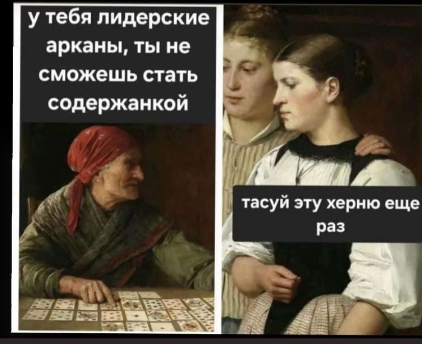 1309 Kotelettka 5 месяцев назад Верите в таро и гороскопы? Странный юмор Карты таро Картинка с текстом Повтор Женщины Мат Гадание Содержанки Зашакалено 48 2 Ещё 0