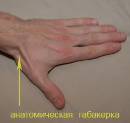 Трапецию можно исследовать в нижней части анатомической табакерки.
