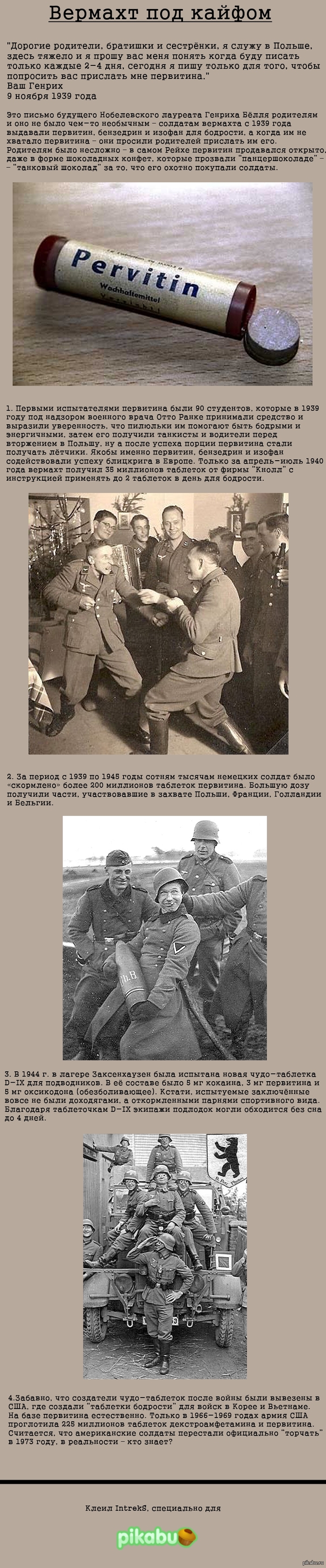 IntrekS Вермахт под кайфом 12 лет назад Небольшой длиннопост о применении своеобразных веществ Вермахтом, во время ВМВ. [моё] Вермахт Первитин Вторая мировая война Длиннопост