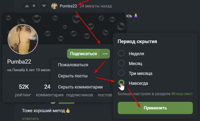 Я теперь вместо минусов авторов постов просто скрываю