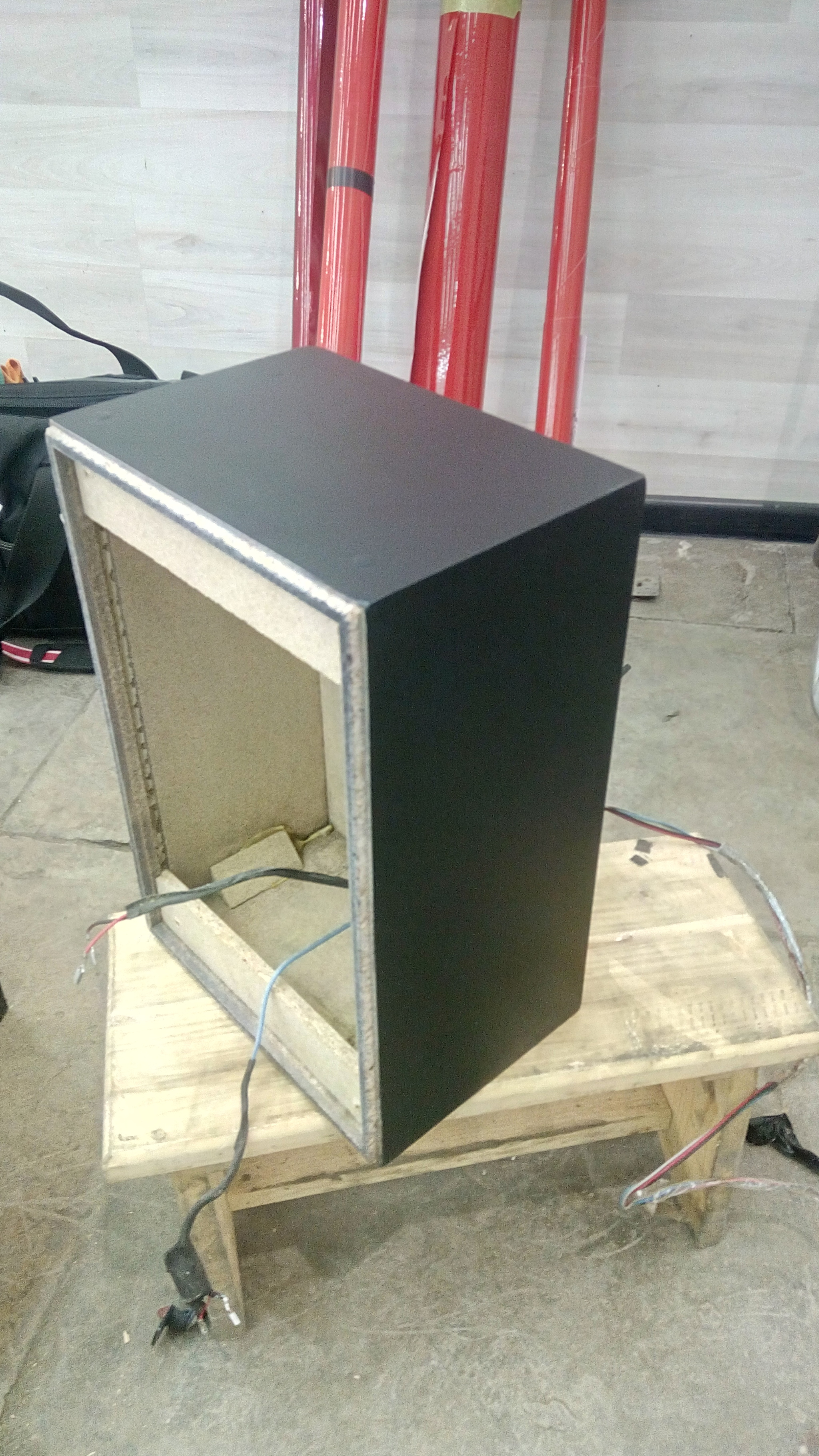 Маленькие колонки также оклеил в черный матовый, а передняя панель ждет свежих идей, как и на большой колонке.