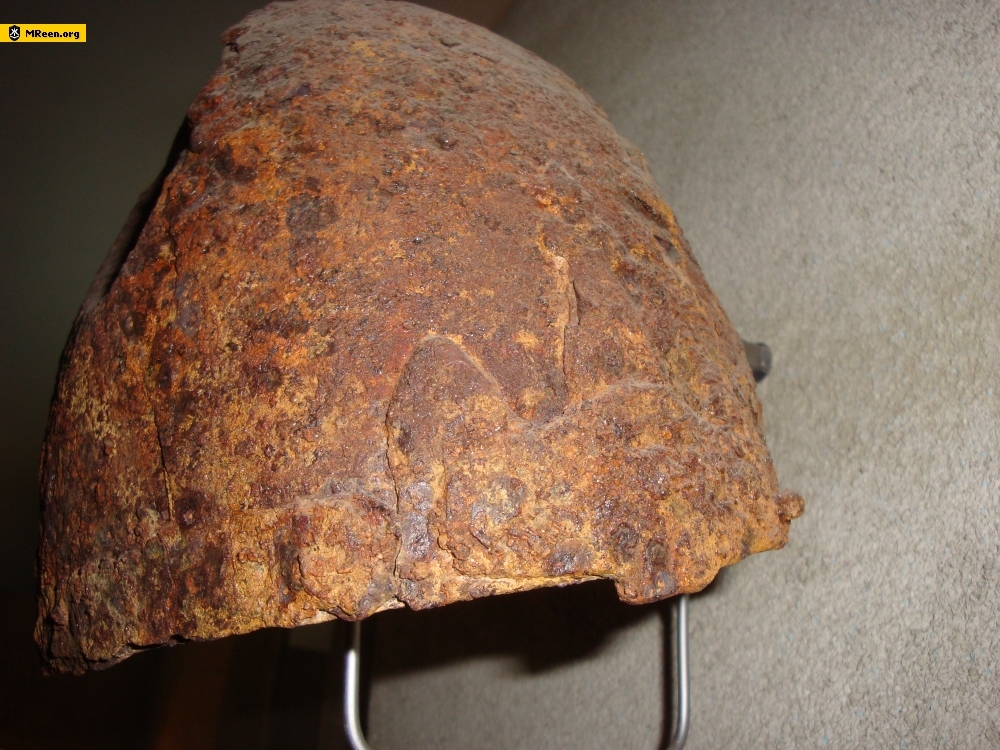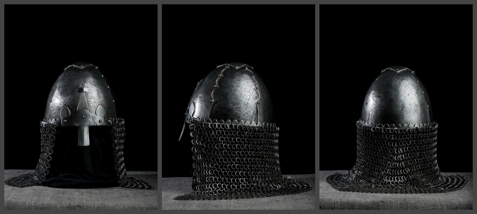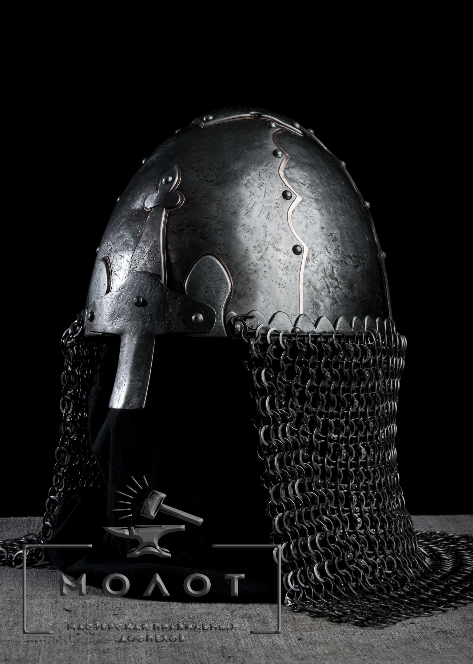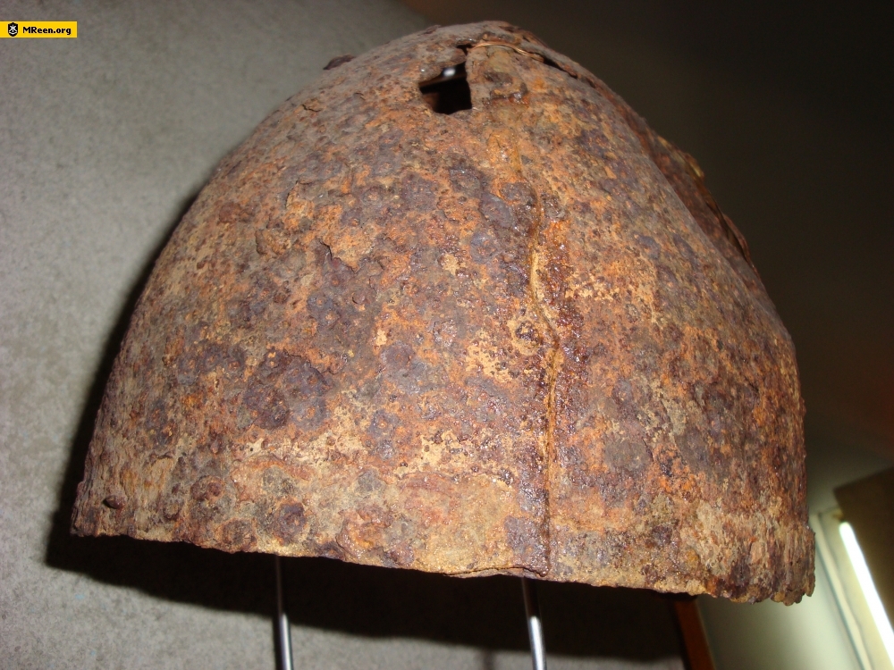 В 1973 году во время земляных работ на склоне балки, на северо-восточной окраине села Манвеловка, Васильковского района Днепропетровской области, тогда еще УССР, было случайно разрушено древнее погребение. В итоге обследования находок, оно было идентифицировано, как древневенгерское и датировано IX-X веком. Подробнее о находках из этого погребения и о шлеме Вы сможете узнать из статьи Л. Н. Чуриловой. Погребение с серебряной маской у ceла Манвеловки на Днепропетровщине // журнал "Советская археология", № 4, 1986 г.