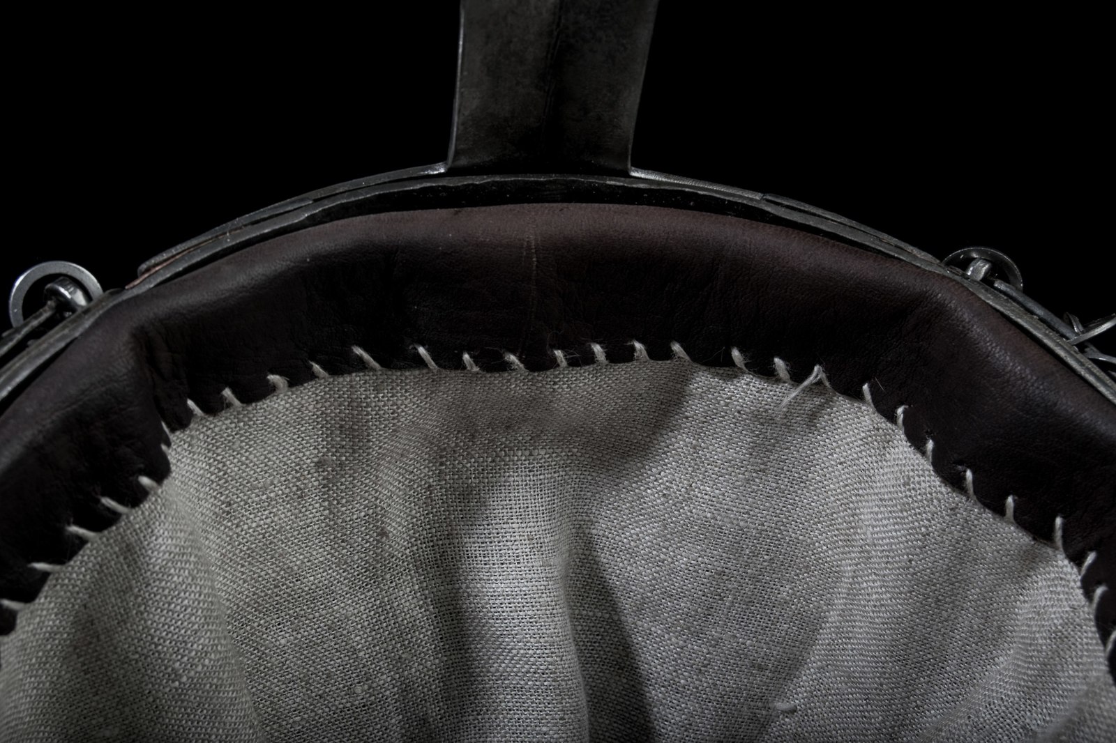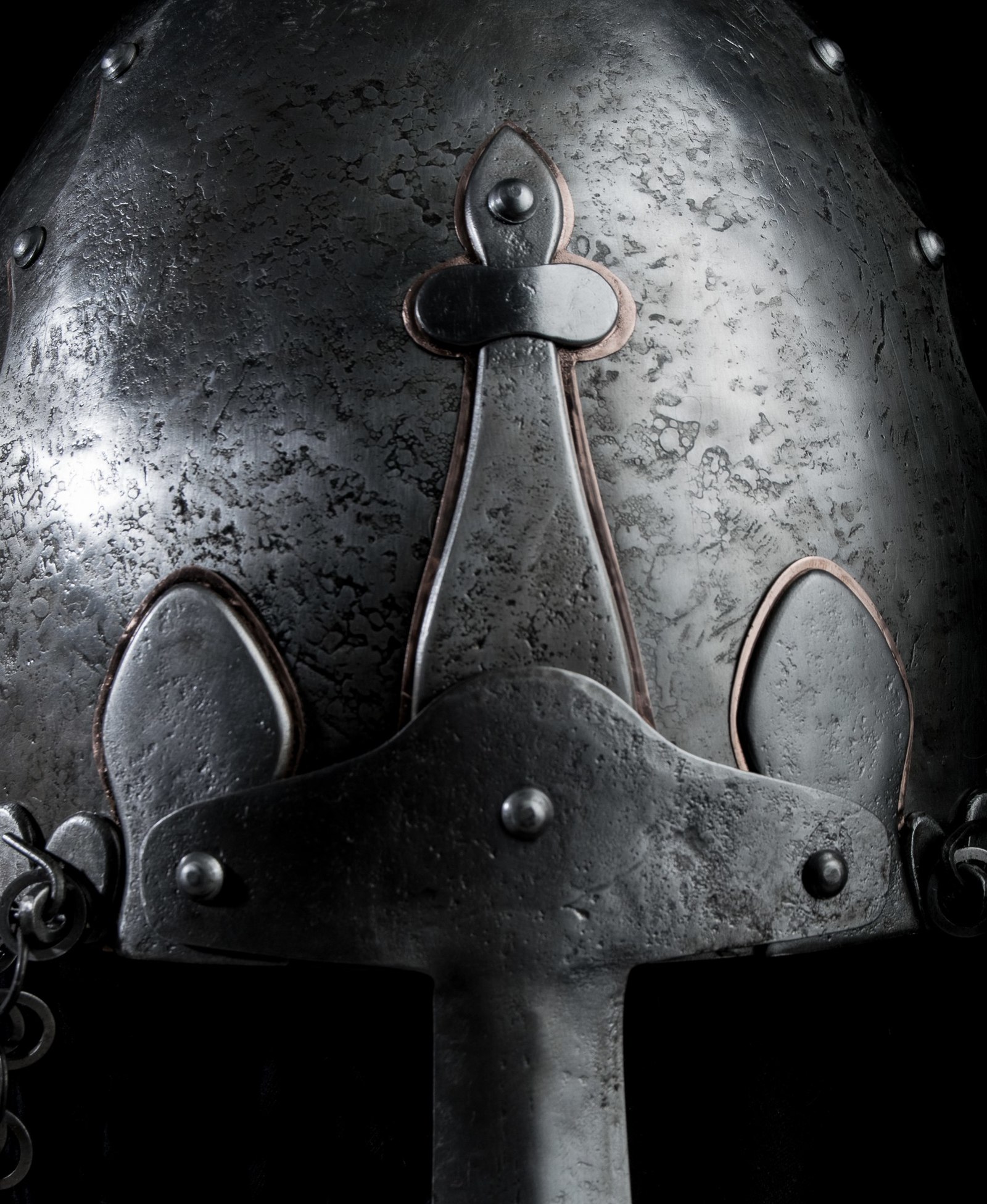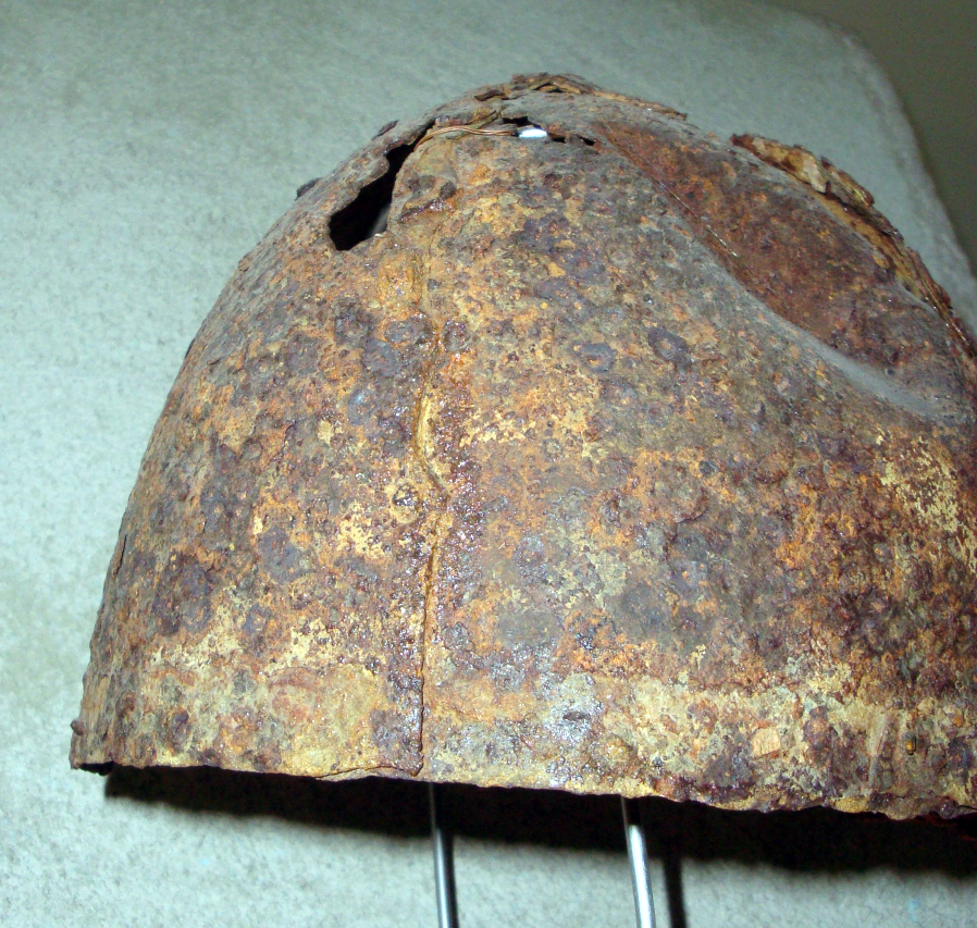В 1973 году во время земляных работ на склоне балки, на северо-восточной окраине села Манвеловка, Васильковского района Днепропетровской области, тогда еще УССР, было случайно разрушено древнее погребение. В итоге обследования находок, оно было идентифицировано, как древневенгерское и датировано IX-X веком. Подробнее о находках из этого погребения и о шлеме Вы сможете узнать из статьи Л. Н. Чуриловой. Погребение с серебряной маской у ceла Манвеловки на Днепропетровщине // журнал "Советская археология", № 4, 1986 г.
