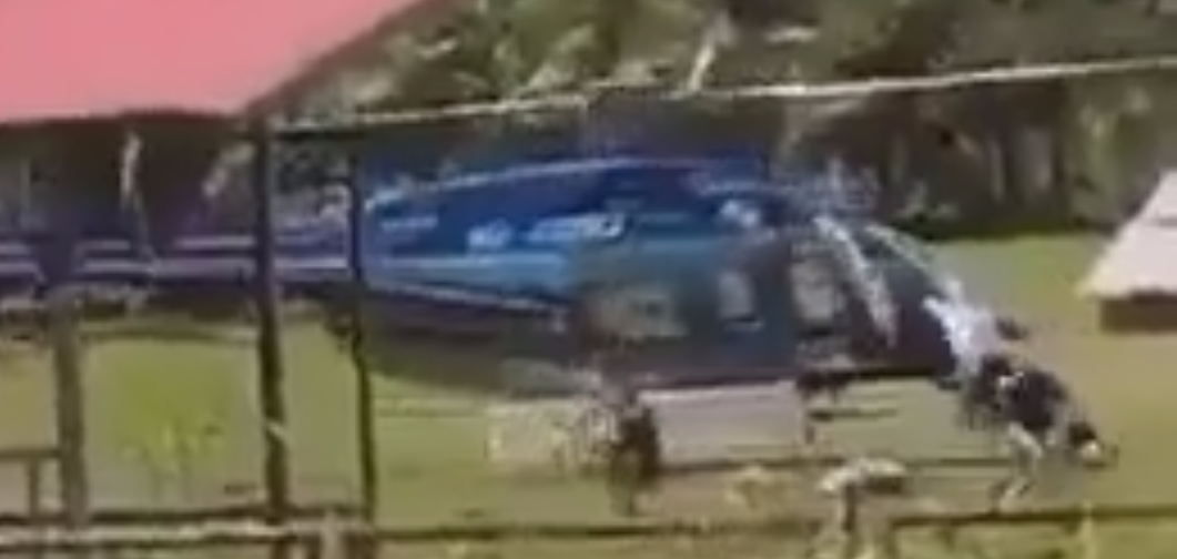 К счастью, хозяину вертолёта удалось вскочить обратно в кабину и успокоить питомца.