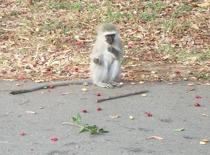 Стая верветок в Южной Африке питается кукурузными и другими зёрнами