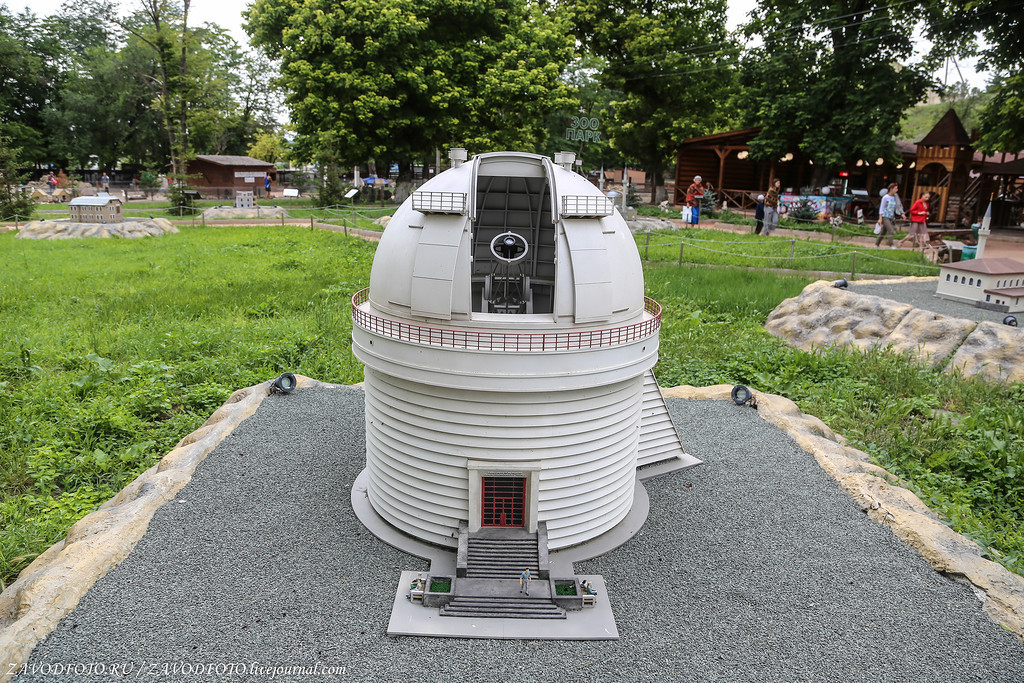 76. Крымская астрофизическая обсерватория. Она расположена на высоте 600 м над уровнем моря в поселке Научном, рядом с Крымским заповедником. Начало астрофизическим исследованиям в Крыму положил Николай Мальцов. Любитель астрономии, он основал на горе Кошка (около Симеиза) частную обсерваторию, которую впоследствии передал Пулковской обсерватории. Еще до Великой Отечественной здесь проводились исследования фотометрии звезд и малых планет. В годы войны симеизская обсерватория была разрушена, а телескопы увезены в Германию. В 1945 было принято решение основать новую лабораторию в центральном Крыму, климат которого лучше подходит для работы крупных телескопов. Место было выбрано с учетом многолетних наблюдений Пулковской обсерватории: именно здесь отмечена наилучшая прозрачность атмосферы и самое большое количество солнечных дней. Еще одним фактором стала удаленность от промышленных предприятий.