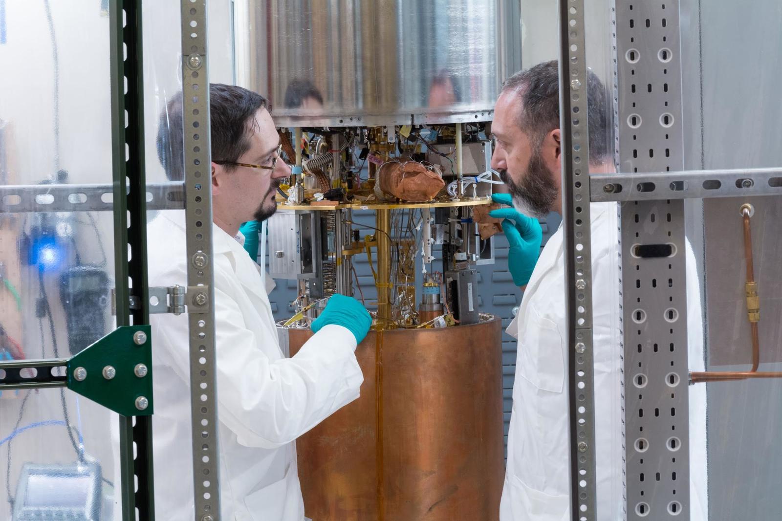 [Как ищем] Аксионы пытаются выявить как по их влиянию на распространение электромагнитного излучения на космических масштабах, так и по их возможному взаимодействию с фотонами в стенах лаборатории. На снимке ниже, например, — один из лабораторных детекторов, построенный в рамках эксперимента ADMX в Университете Вашингтона (США). Предполагается, что аксионы в магнитном поле могут превращаться в фотоны и, соответственно, чувствительный детектор напротив камеры с мощным магнитом сможет зафиксировать вспышку родившегося таким образом фотона.
