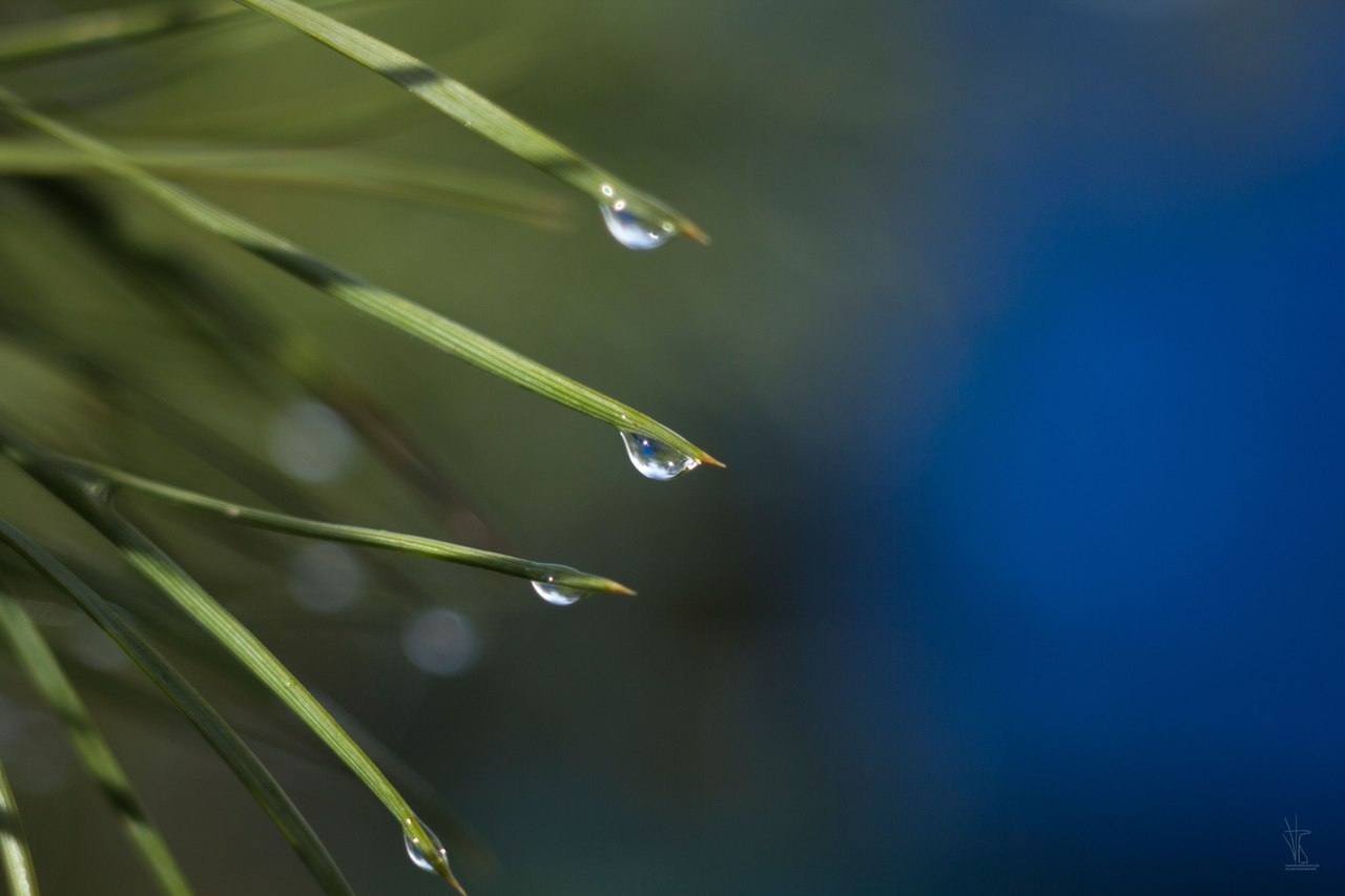 Очень весенний цвет сосновых игл после дождя