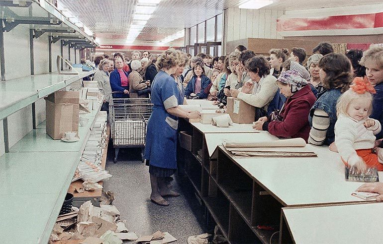 А сейчас вы за колбасой не стоите? Или ссср вернется, все такие сразу айфоны выкинут и достанут бидончики.