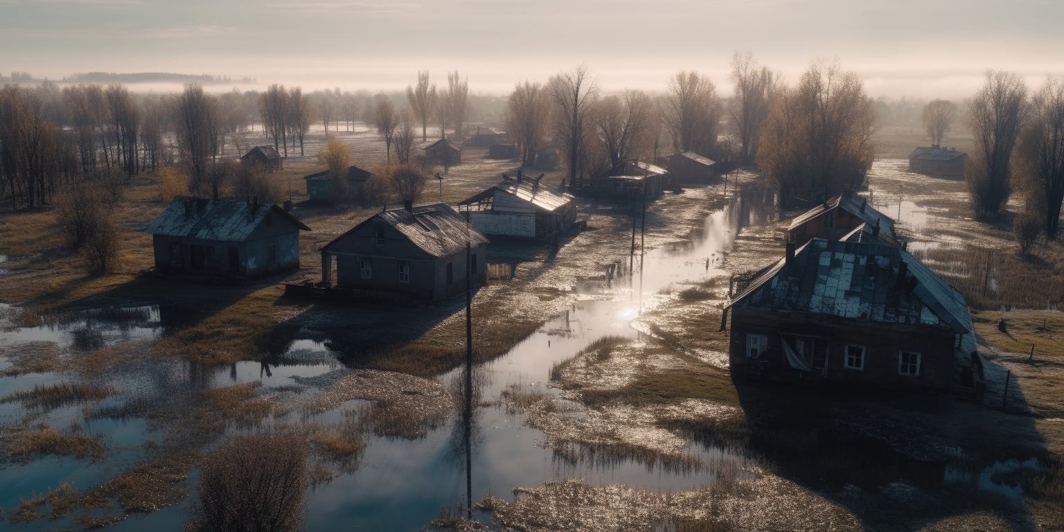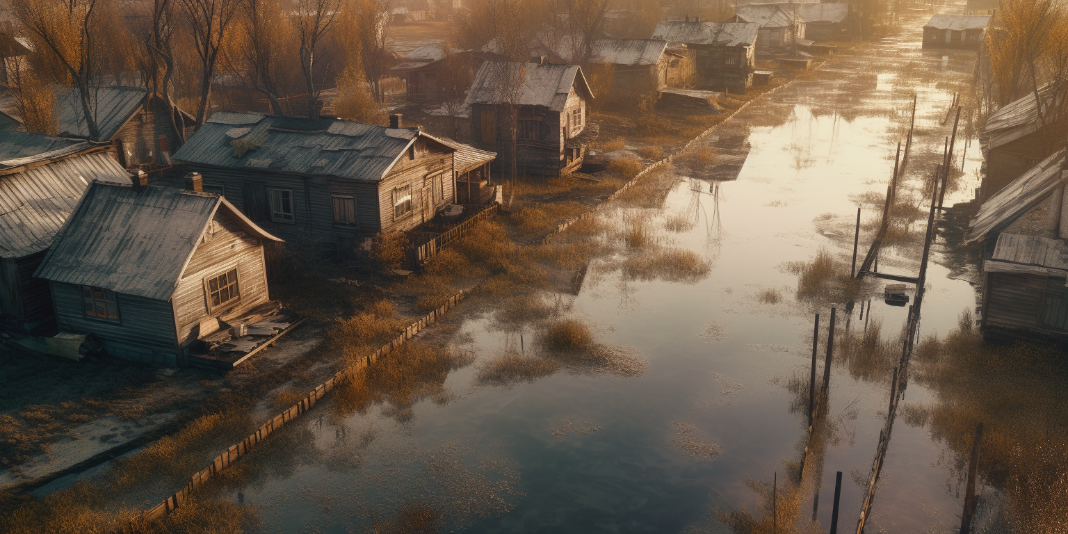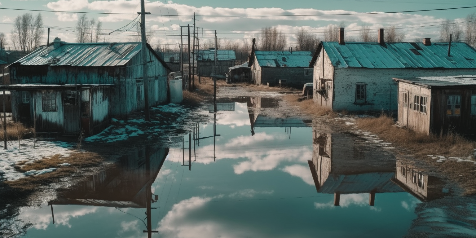 54 ghostwind Midjourney Серия SovietCore Весна 2 года назад [моё] Midjourney Арты нейросетей Нейронные сети Весна Паводок Деревня 1 Ещё 0