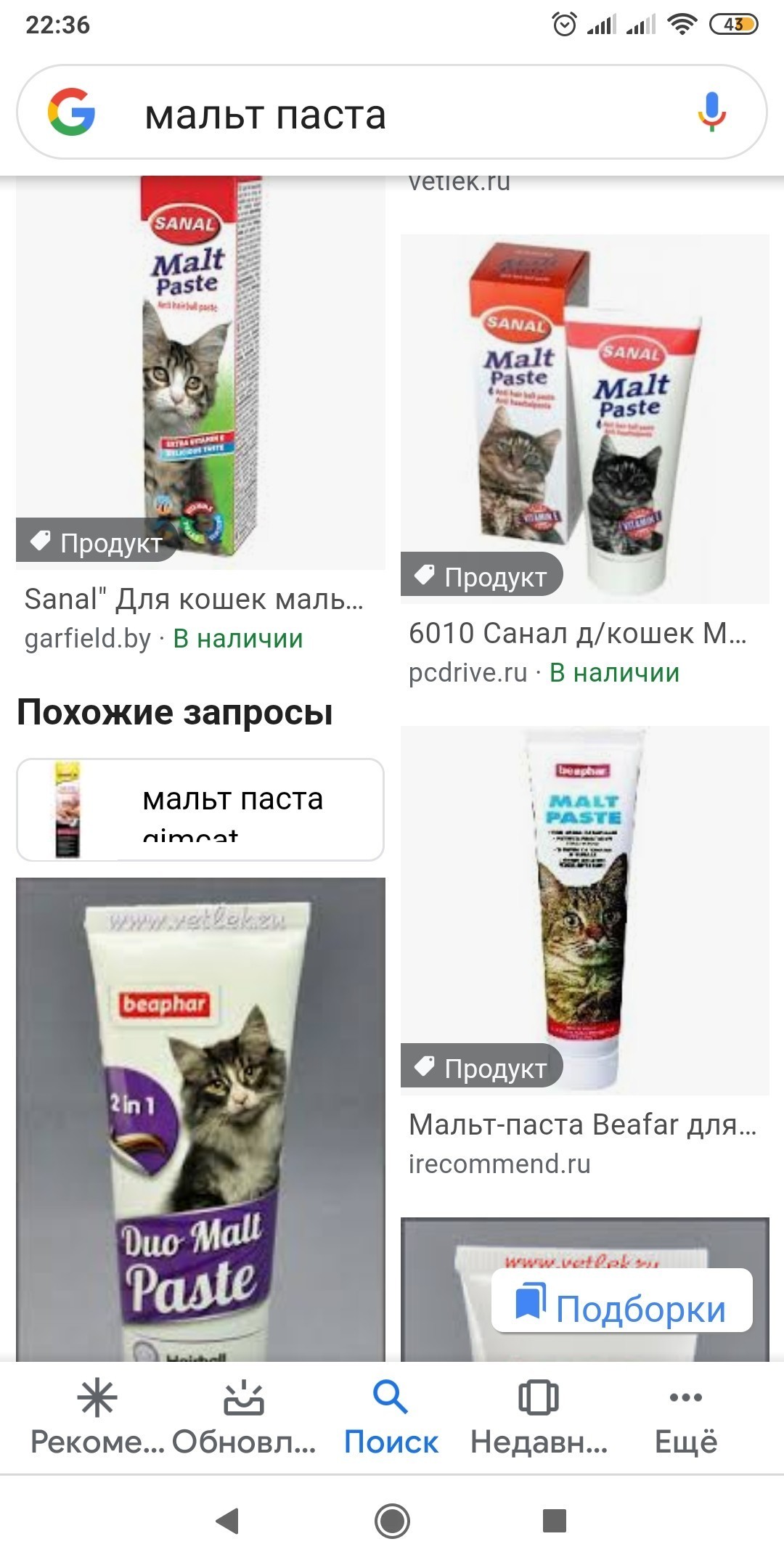 Чисто кошачья проблема - безоары. Или мотки собственной шерсти, нализанной с собственной шкуры. Многие кошки в состоянии выблевать собравшуюся в желудке шерсть (желательно в хозяйскую постель). Но у некоторых кошек шерсть сматывается в желудке в подобие лепёшки и потом оно ни туда и ни сюда, зато раздражает желудок как инородное тело и кошка изводит себя и хозяев постоянной пенной рвотой. Поэтому кошкам раз в неделю скармливают специальную пасту для растворения нализанной шерсти.