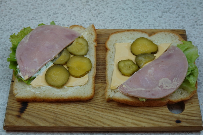 Четвертый участник этого мероприятия, сэндвич с ветчиной и сыром.