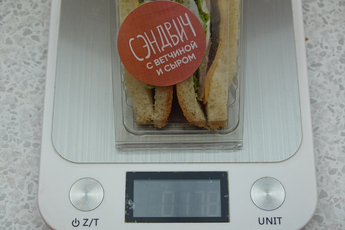 Выводы: 100 рублей за 170 грамм хорошего сэндвича. Получается 59 рублей за 100 грамм продукта.
